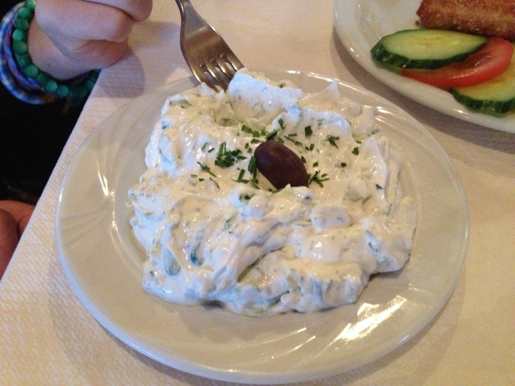 OMG! Fried feta with sesame and honey appetizer.The most incredibly rich thick and delicious tzatziki.Bacon wrapped chicken souvlaki with fresh squeezed lemon.The mixed grill was delicious, save for the mystery grilled liver.Ouzo bottle chandelier.Complimentary flan from the management.