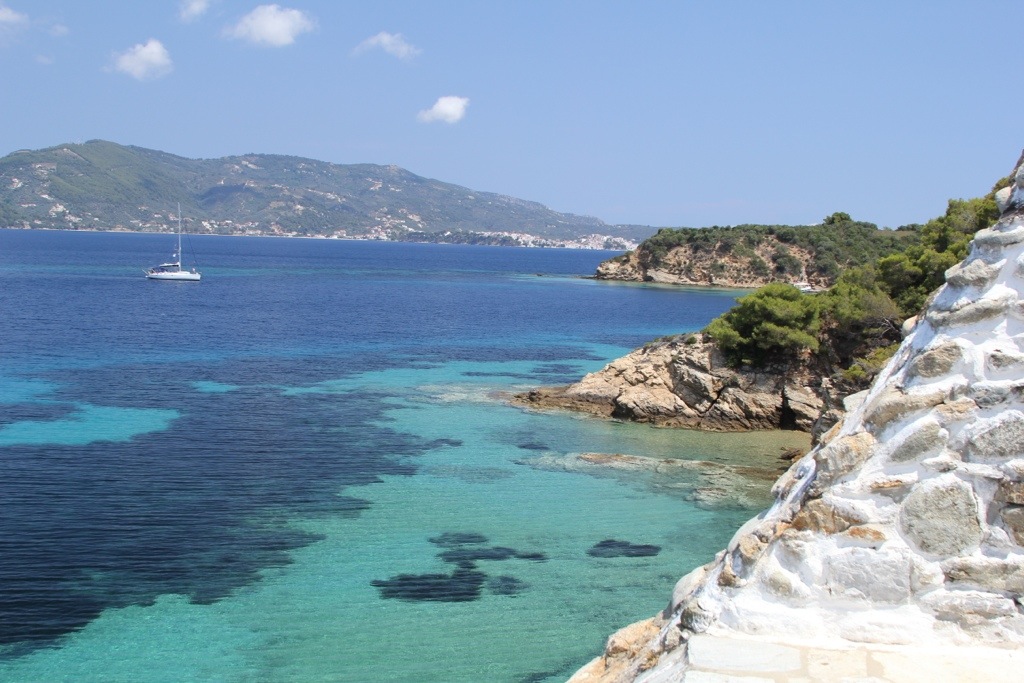 After our morning walk above Skiathos we pulled anchor and left Siferi Cove for a quick swim at Tsoungria Island located at the south entrance to Skiathos Bay.