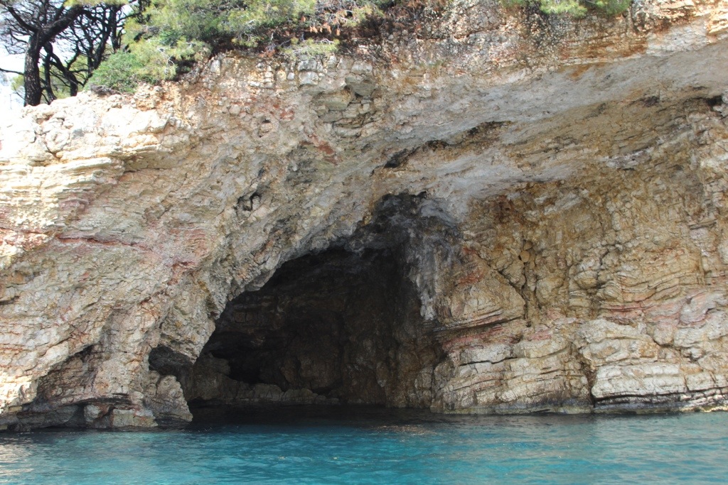 We sat below for an hour or two waiting for the storm to pass. Eventually it did and Tom, Clara, Tawny, and I ventured out in the dingy to explore the caves nearby the bay. There are so many caves along the shores of the Sporades that after awhile it was so commonplace I stopped photographing them. Many of these caves had been above waterline at one time and have evidence of human inhabitants that dates back to pre-neolithic times.
