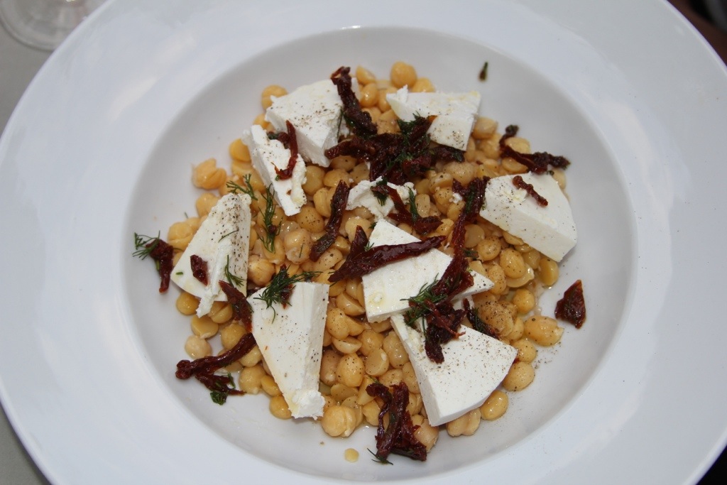 The place turned out to be a mom and pop place but with a young couple, an Italian woman and her Greek boyfriend and their baby girl. Her Italian sister and her Greek boyfriend were also part of the restaurant. It was very chic variation on modern Greek and Italian food. Perhaps one of the best meals we’ll have in Greece. It was certainly the best to date. The seared tuna was a hit as was the garbanzo bean salad, the homemade tagliatelle with shrimp, but the best was the gnoci with browned butter.