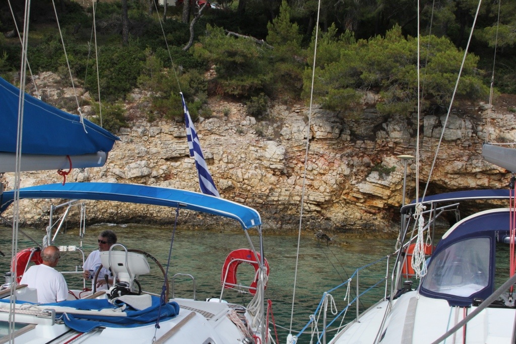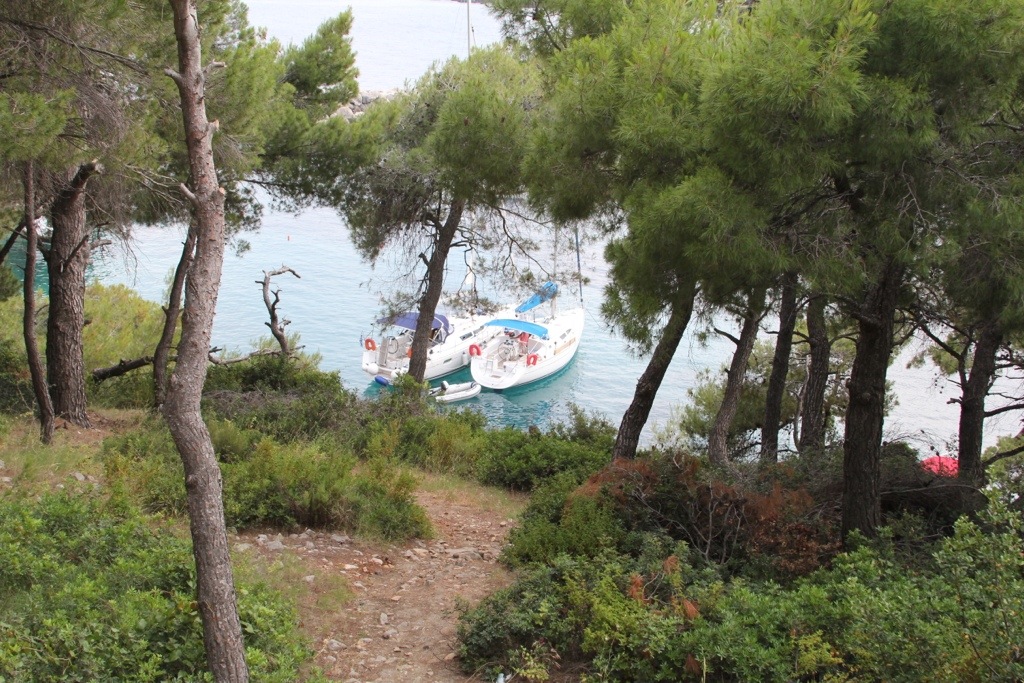 Tuesday evening we tried to get into the port of Patiriri on the island of Alonnisos but the port was very full so we had to go to the fisherman’s bay northeast of the main town. Although Barry and Judy were able to find a berth in Patiriri on the quay. The fisherman’s bay turned out to be a very protected bay called Votsi that we liked so much we decided to stay in for 2 nights.