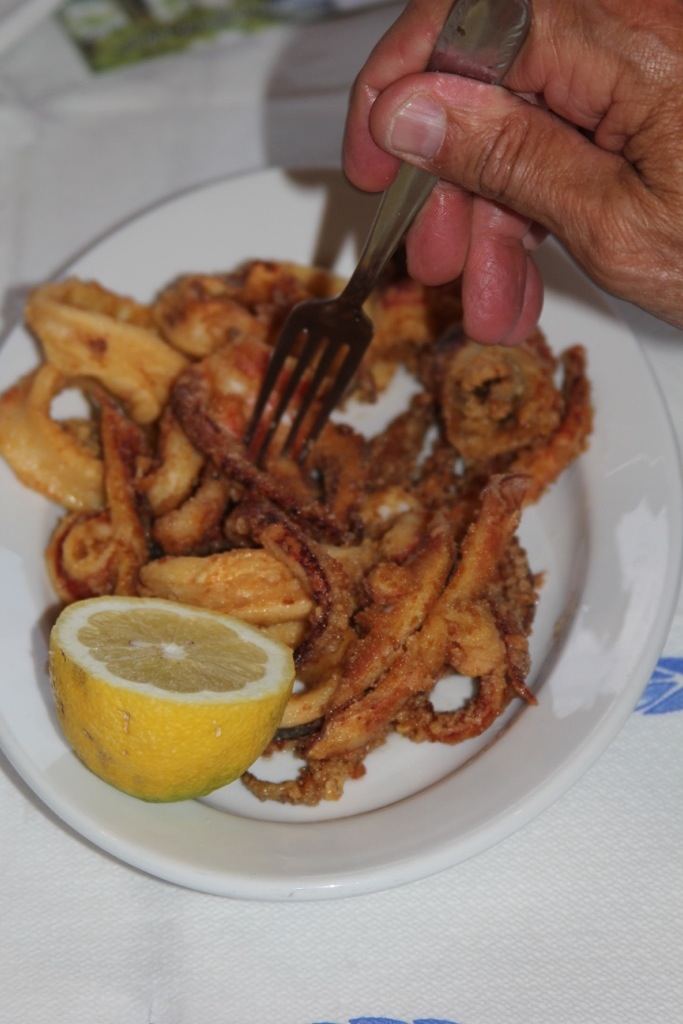 We went ashore (about 10 feet in a dingy) and clambered up the path the fishermen had made along the cliff wall. When we got to the top we saw not a food truck but a brand new restaurant – empty. We were early in the season and we were the only tourists staying in Votsi, so we decided we’d eat there for the night. One of the best meals we had in Greece to date! It was fantastic! Literally a mom and pop restaurant as the only two people there. Very new (kitchen looked like it never had a meal cooked in it, bathroom was perhaps the cleanest bathroom I’ve ever seen!)