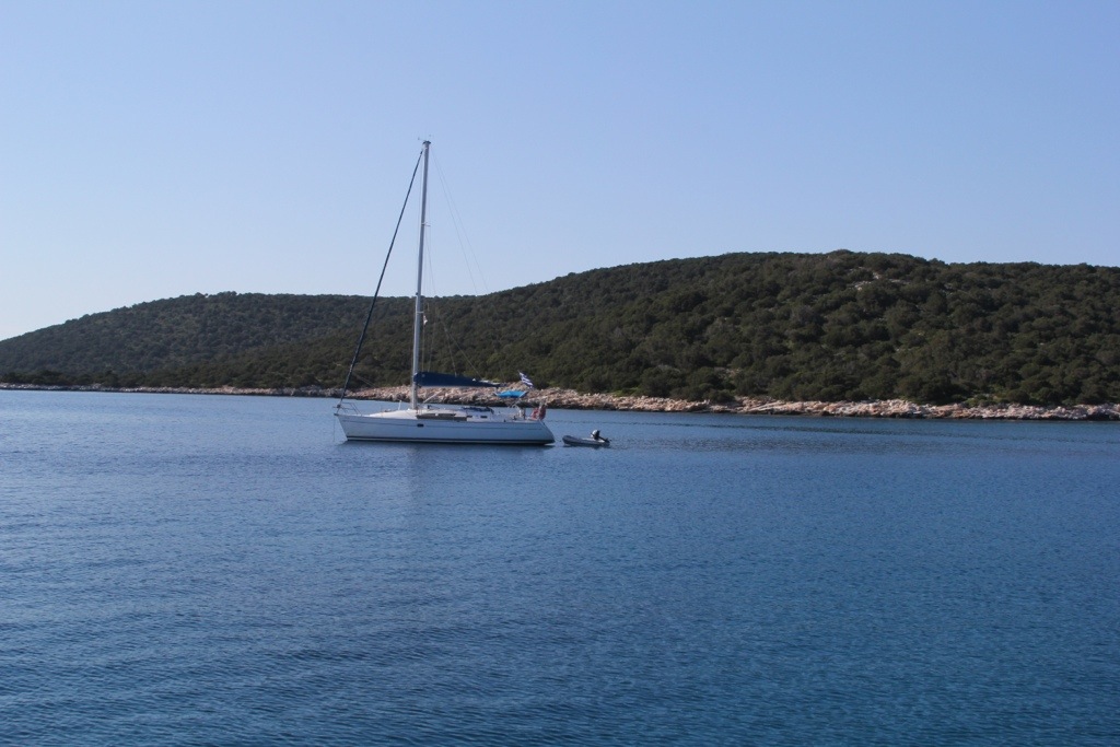 It was a hot and very calm day. No wind. No sailing. The Aegean was flat and still.