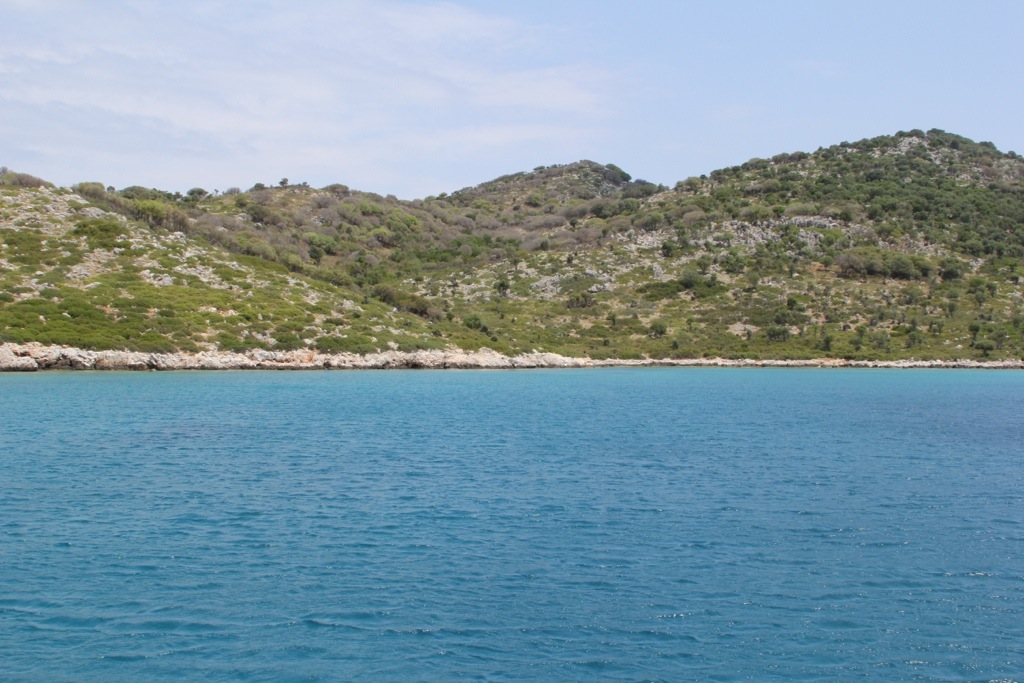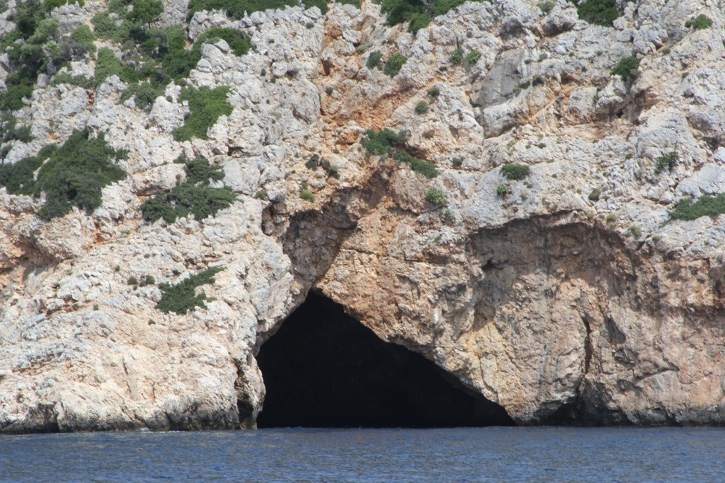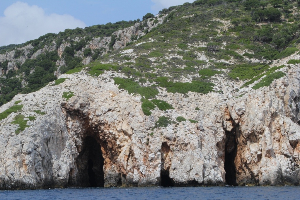 Thursday morning we woke to mixed weather. A few showers sprinkled with sun breaks. We left Steni Vala and headed up the east side of Alonissos past many caves. One called the Blue Cave (which is said to be deep enough to easily paddle into and explore) and 3 other nearby caves which legend says that a sea monster lives in the third cave and nobody who has ventured into is has ever returned.
