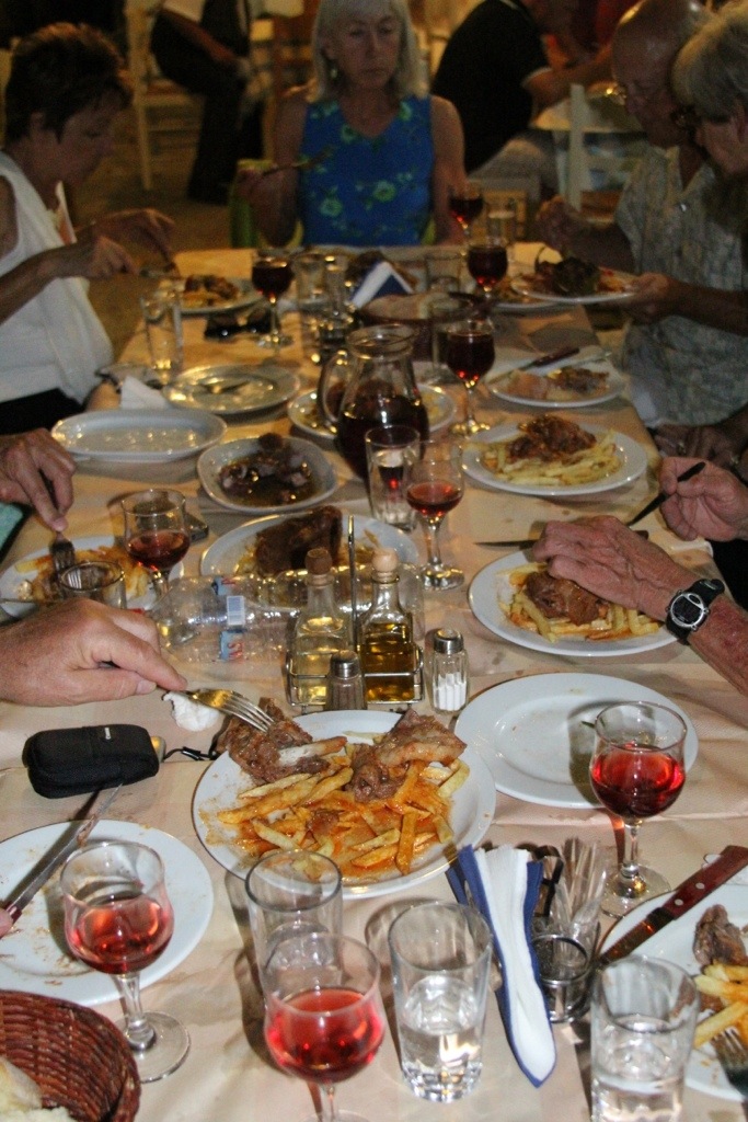 On the island of Skiros (Skyros) in the port of Linaria (a fantastic little fishing port) we sat down for dinner one night. We tried to order lamb but they didn’t have any. They said they had lamb but not time to cook it. They showed us their lamb and we asked for it tomorrow night and also asked if I could help cook it. They agreed. So around 7pm I headed over to the restaurant to help cook the lamb.