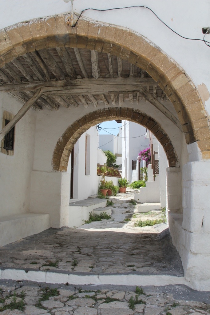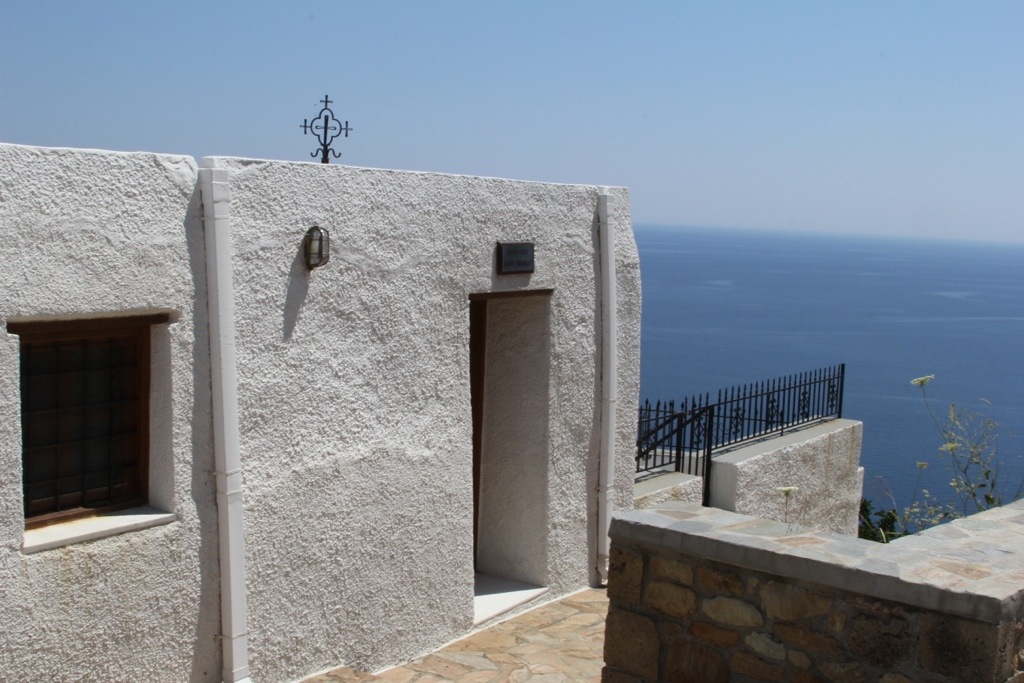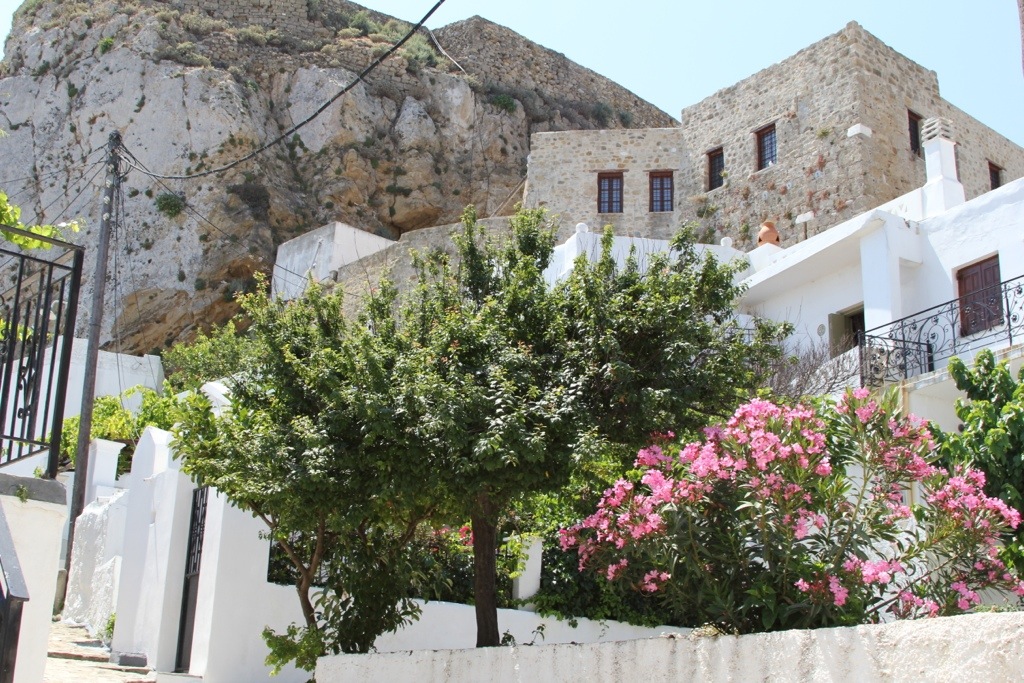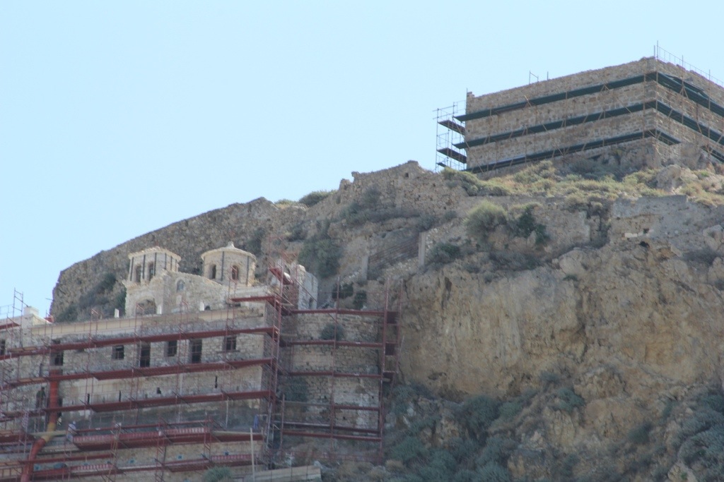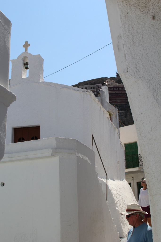 Monday we hired a taxi and went to Skiros Town (also known as Chora or Hora). Its a beautiful cubist style town perched upon a cliff overlooking the sea on the windward side of the island. The town has an interesting history. It has a prominent castle on the top of the mountain that used to be an acropolis and was converted into a monastery of St. George. It was under construction due to damage from an earthquake when we were there so we couldn’t go inside but we did walk the winding streets up through the town, over rooftops and small alleyways built atop each other so we could see the view from the top. It was spectacular.