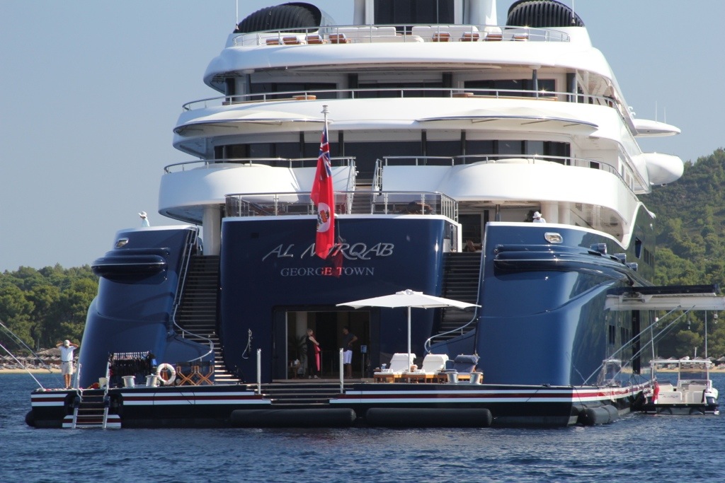 As we approached I thought I saw a ship in the area we were heading. I bet it was a luxury private yacht and was right. It was the ship Al Mirqab the 10th largest private ship in the world owned by the Prime Minister of Qatar. It has its own Wikipedia entry. Its a beautiful looking yacht if you can get past the enormous wealth it represents. It cost some 700 Million British Pounds (that’s just over $1 Billion!)
