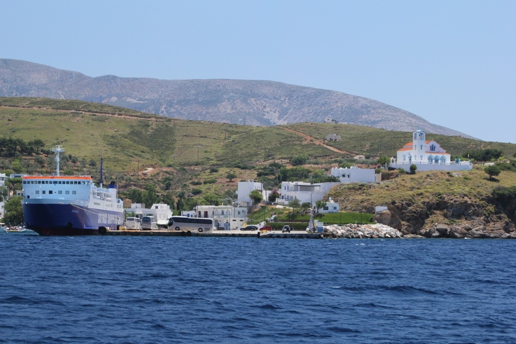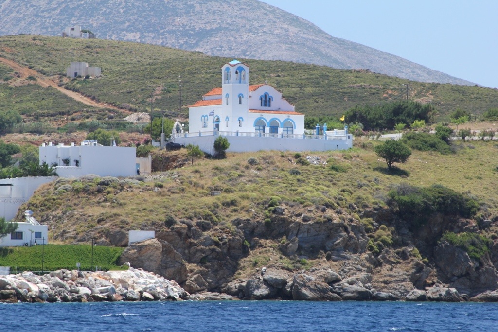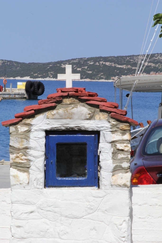 Linaria is a pretty little town with white washed cubist homes on the hill and a white and blue church on the point of the bay that welcomed us. The port is very small but very nice as they recently upgraded to lazy lines (pre-set anchor lines) so we had no need to drop an anchor for stern tie Mediterranean moorage style. There is also a port manager (George) who took care to help moor our boat and took care of all our needs; “You need shower? I have shower for you. Free internet, free water, free electric hookup, my boys will find bike and ride bike and swim with your daughter. You want to see Skyrian horse? I have friend. I call taxi for you. I rent you motorcycle. Eat here, best place in town. Your daughter like dog? We have English Sheep Dog. Anything you need, you find me, I’m always here”.