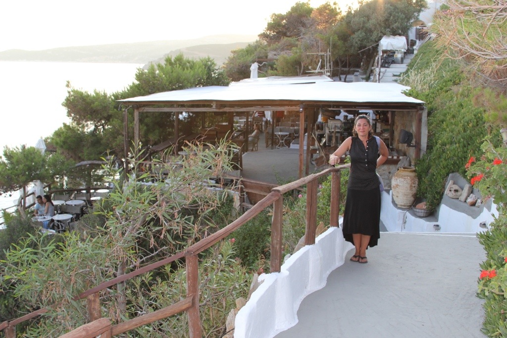 George told us about a place to get a drink up on the hill that looks back on Linaria. “Favorite place in all of Aegean.” And he was right. Great place to watch the sun set and get a drink. So we did. George was great. He delivered on all his promises and our petty demands. He and his wife were very sweet and really tried hard to make Clara feel at home. Then later that night we invited George and his wife Angela to have a glass of wine with us and thanked them for their help. We loved Linaria and Skyros. We’ll certainly be back again.
