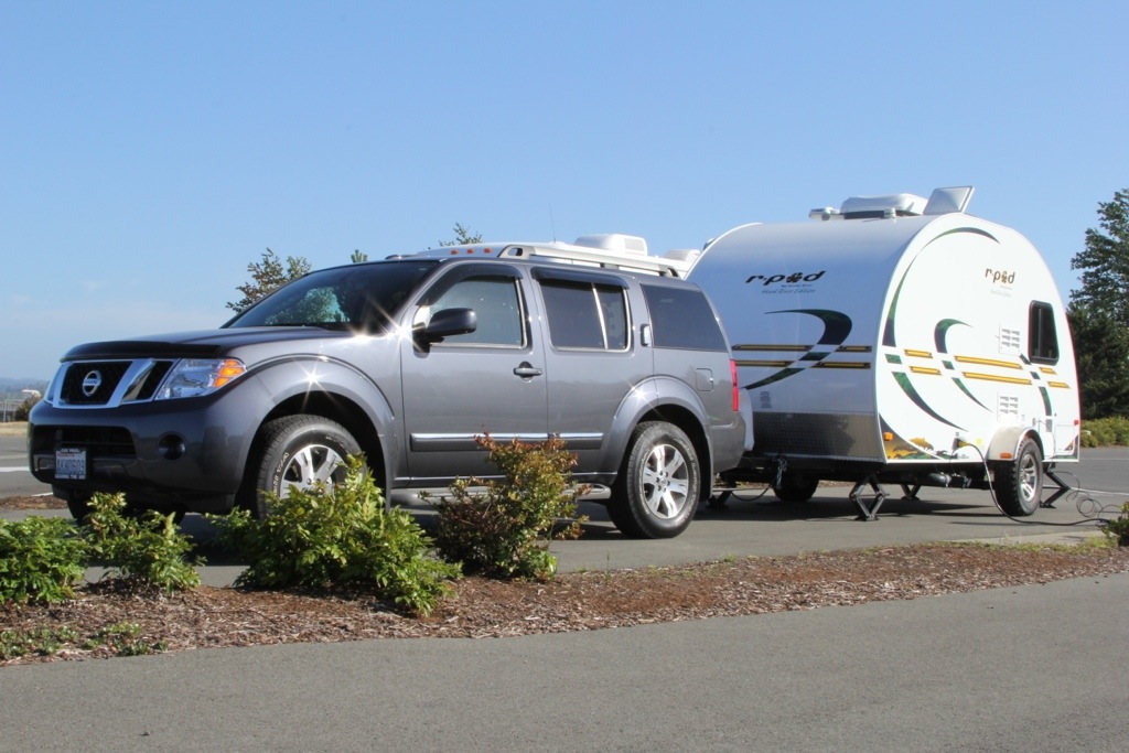 Early in our relationship we drove to Las Vegas to visit Tawny’s father and drove down the coast. It was a great experience – Redwoods, Monterey, Big Sur, San Simeon, etc. It was an experience we wanted to capture again with our daughter. So, in May we bought a travel trailer (an r-pod) and a new car (Nissan Pathfinder) to tow it.