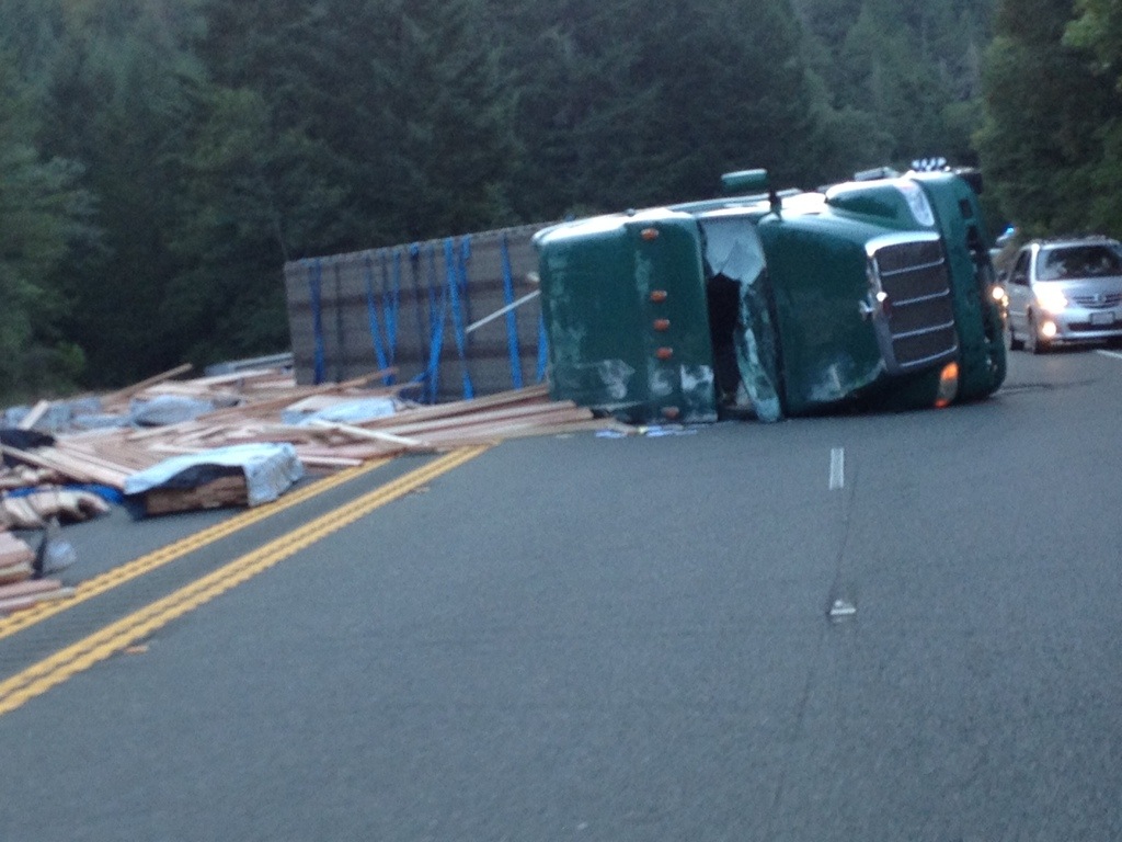 From the Trees of Mystery (which we finished at 4pm) we realized we still had a 4.5 hour drive on to the Willits KOA where we had made a non-refundable deposit (note to self – check the distance of the campground you reserve before you reserve it). So we drove and drove and drove and drove …and when we were within 15 miles of Willits, CA we were flagged down by a first responder. There had been an accident ahead that had closed 101 (a lumber truck had overturned) and it might be awhile before we could continue, especially because we were in a trailer and the room to get past the wreckage was small.