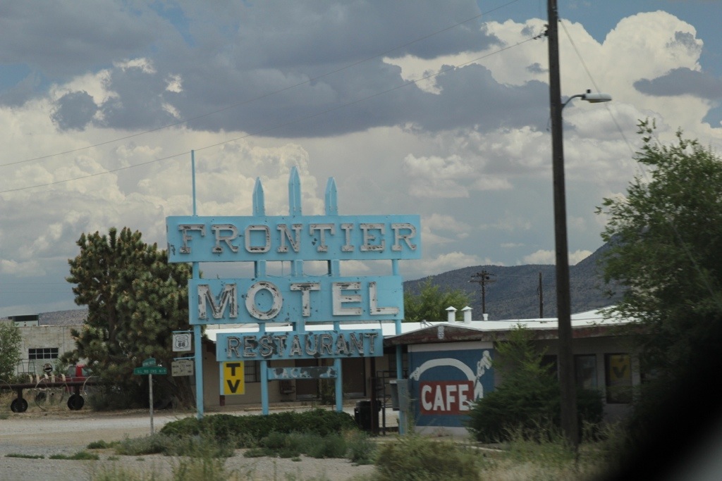 The first Route 66 stop was the very small town of Hackberry in which you could see the inspiration for Cars all around us. The mesas. The old cars. Even a ‘Mater (Nader and Sons Towing). The whole experience was like being on a movie set. We even had a huge storm brewing behind us. Dark clouds, heavy rains, thunder, lightning, and gusty winds that set the rusty roadside signs a-squeaking.