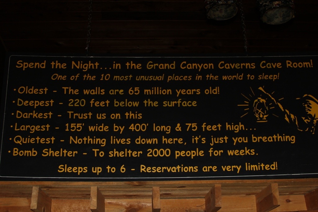 Next we drove on past little ghost towns, or glimmers of civilization such as Peach Springs and the Hualapai Indian Nation, past red rock mesas and on to the Grand Canyon Caverns which had formerly been known as the Dinosaur Caves.