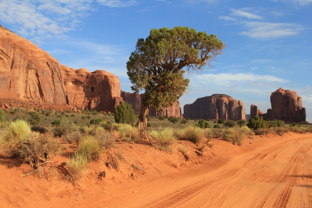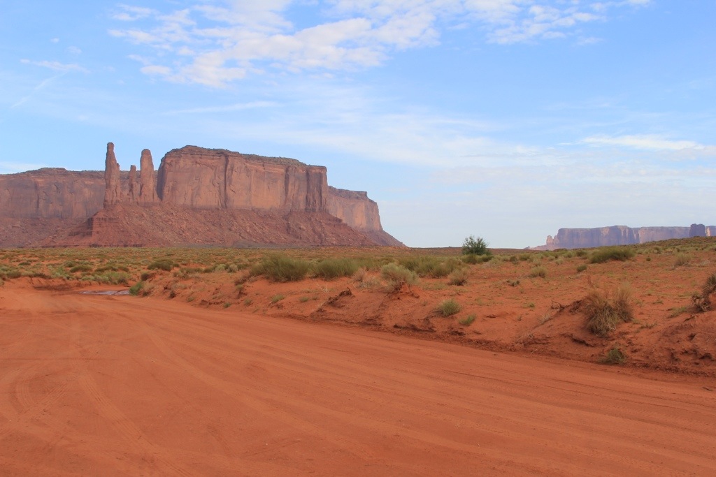 Tuesday night we were watching the Navajo Informational Channel in our R-Pod and it made brief mention of the road into Monument Valley being a rutted and rough unpaved road. Since our checkout time from Goulding’s RV Park wasn’t’ until 11am we decided to get up early and head into Monument Valley in the early morning without the trailer.