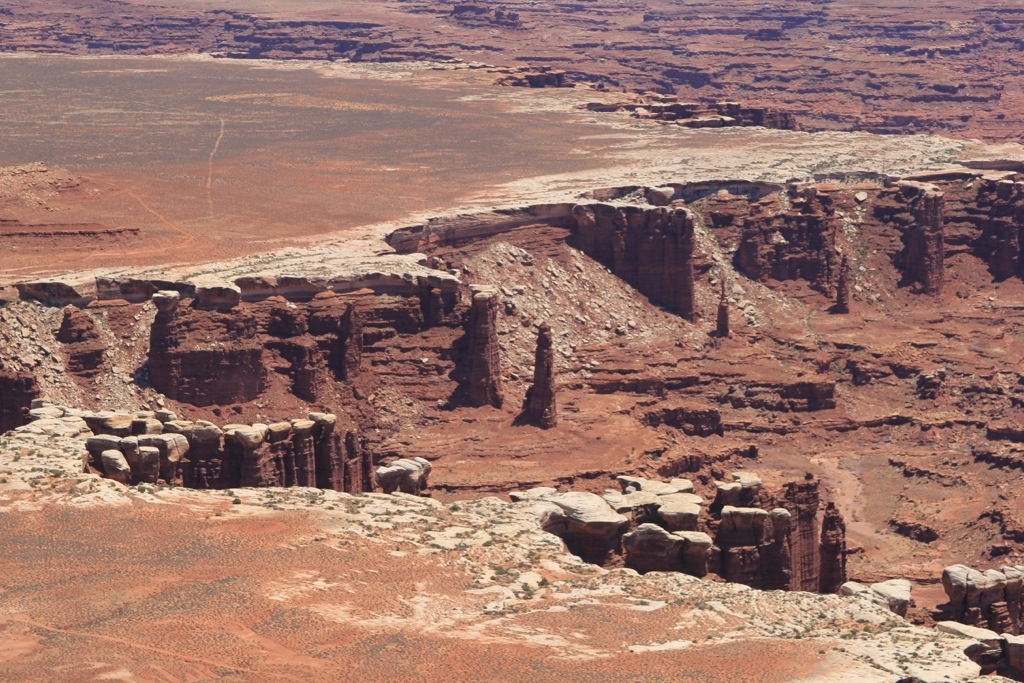 Grandview was just that – A grand view. We decided to have this end our day at Canyonlands. Stellar views. This is a park to visit again on bikes or for hikes in cooler times like spring and fall. Most of the park is back country and only accessible via dirt road, hike/bike trail, or raft. A tour by car was short but sweet and memorable.