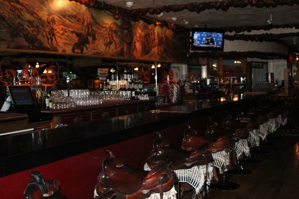 We went into Jackson to walk around town square and take the kids to the Million Dollar Cowboy Bar so they could sit on at the bar on a saddle amongst the burl wood decor. This is more biker bar than cowboy. Unfortunately they have to be 21 or over to go into the bar. They wanted pictures so we sent the kids across the street to Ripley’s Believe it or Not while Tawny and I had a beer in the bar and took some pictures of the saddles for the kids at the suggestion of the woman who worked in the Cowboy Bar Gift Shop. Not 15 minutes later the kids called us to say they’d been through the Ripley’s Museum already – 3 times! We bailed and worked on finding a place for dinner. We ended up at The Rendezvous Bistro which had a line out the door when we arrived while thunder, hail, and rain poured down around us. The place was packed and offered us one of our better meals while on the road. After dinner the skies cleared and we enjoyed the large hot tub at the Virginian. Later that evening I updated my blog from amongst the taxidermic animals and patrons of the Virginian Saloon.