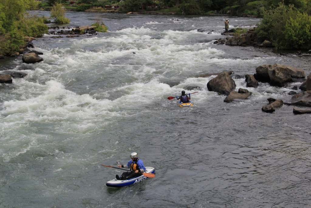 But Bend was an oasis. My cousin’s new home was beautiful. The view of the Deschutes River gorgeous and relaxing. So much so that we took the kids (and their super sweet dog Ginger) on a walk along it and Cody tried his luck (no luck) again at fishing. The walk along the Deschutes played out like a brochure for moving to Bend, couples walking the river, people kayaking, fly fishing, swimming in the river, or walking their dogs. It was picture perfect and topped only by the fabulous meal my cousin’s husband George cooked for us. And the insalata caprese with nasturtiums my aunt made with exquisite tomatoes from her friend’s garden. It was a very lovely evening with family and nice to see Clara connect again with her cousin Emi and for everybody to meet Cody. It was also very nice to sleep in a real bad again, but I must admit I was a little melancholy about not sleeping in the r-pod and the winding down of our Great American Road Trip.