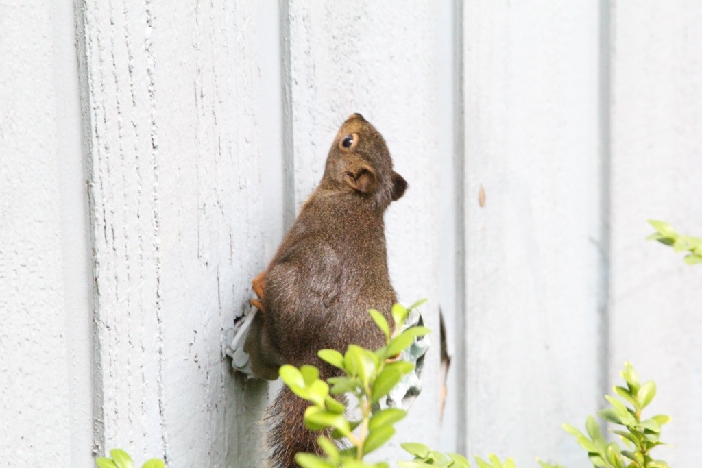 Speaking of yard work…I was trimming back branches from the house when I realized two babies squirrels were trying to find a way back up to the drey under our upstairs deck they had earlier emerged from. Apparently I had cut back the branches they used as a bridge from the trees to their home. On advice of our local pest control and animal advocacy company I built them a small bridge from the trees back to the porch so they can return home. They assured me in a few weeks the squirrels (who are just now exploring from the drey) will move on and pest control will come back, remove the drey, and fix the hole.
