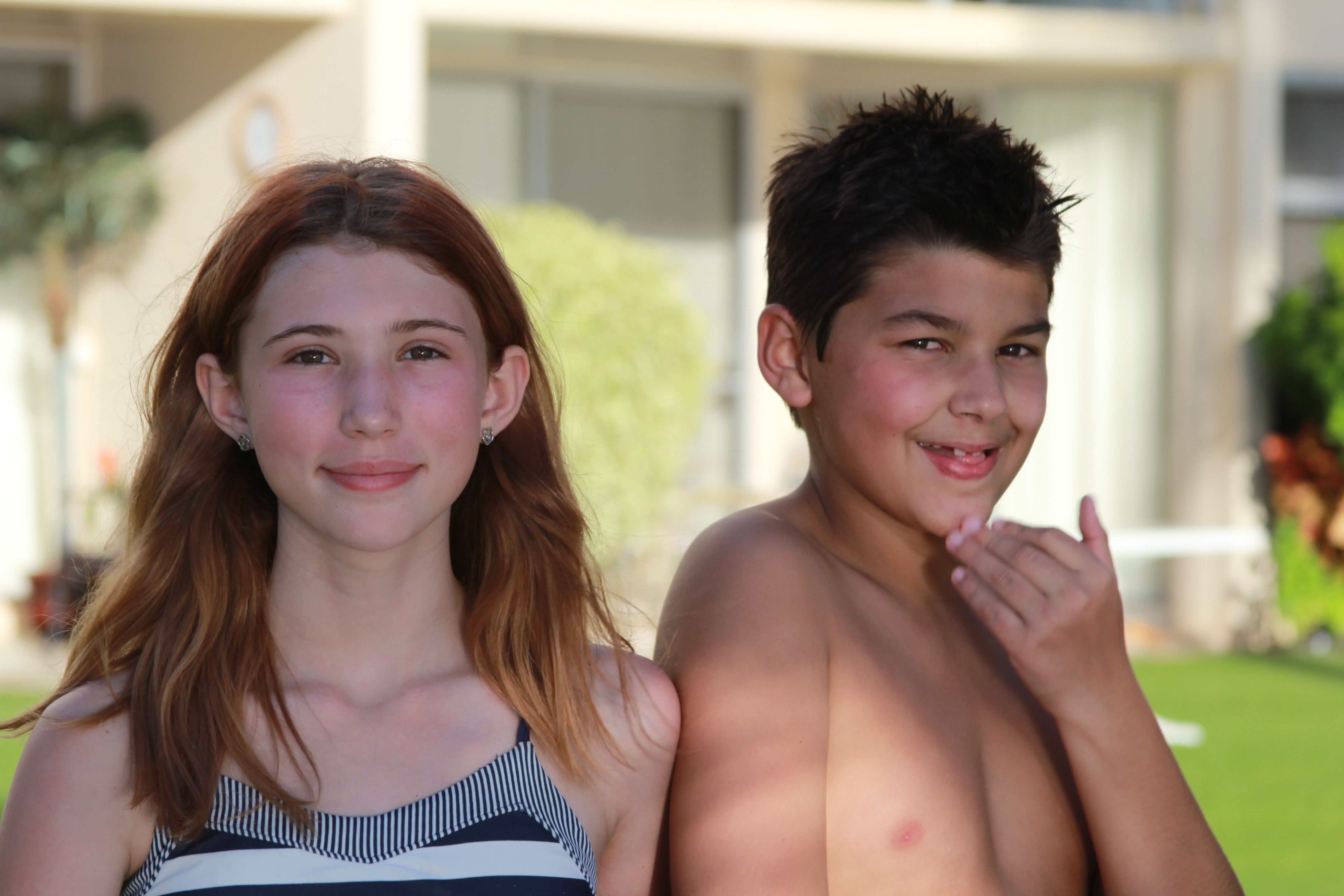 Niece Yarrow and nephew Heath had a great time swimming in the pool and running on the lawn.