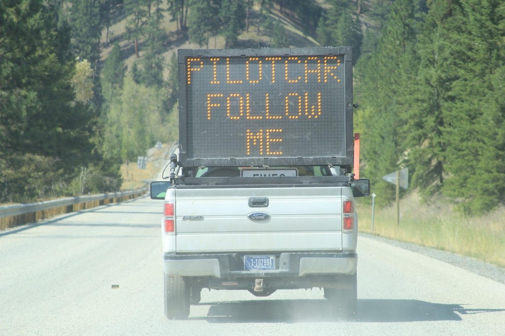 From Libby we encountered a huge construction delay that may have added an extra hour to our trip. A road resurfacing project required a pilot car to drive a 25 MPH pace across a 10 mile stretch of gravel road on Highway 37 from Libby to Eureka.