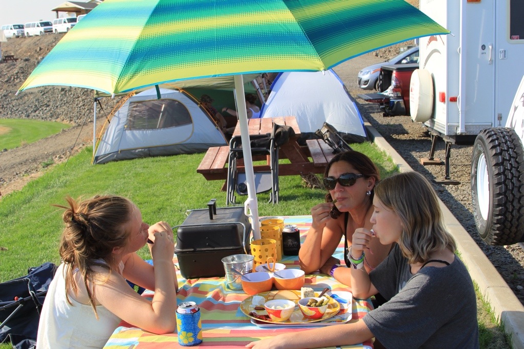 We were among the first to arrive in the late afternoon. We set up our camp and relaxed to vistas and sunset across Columbia River.