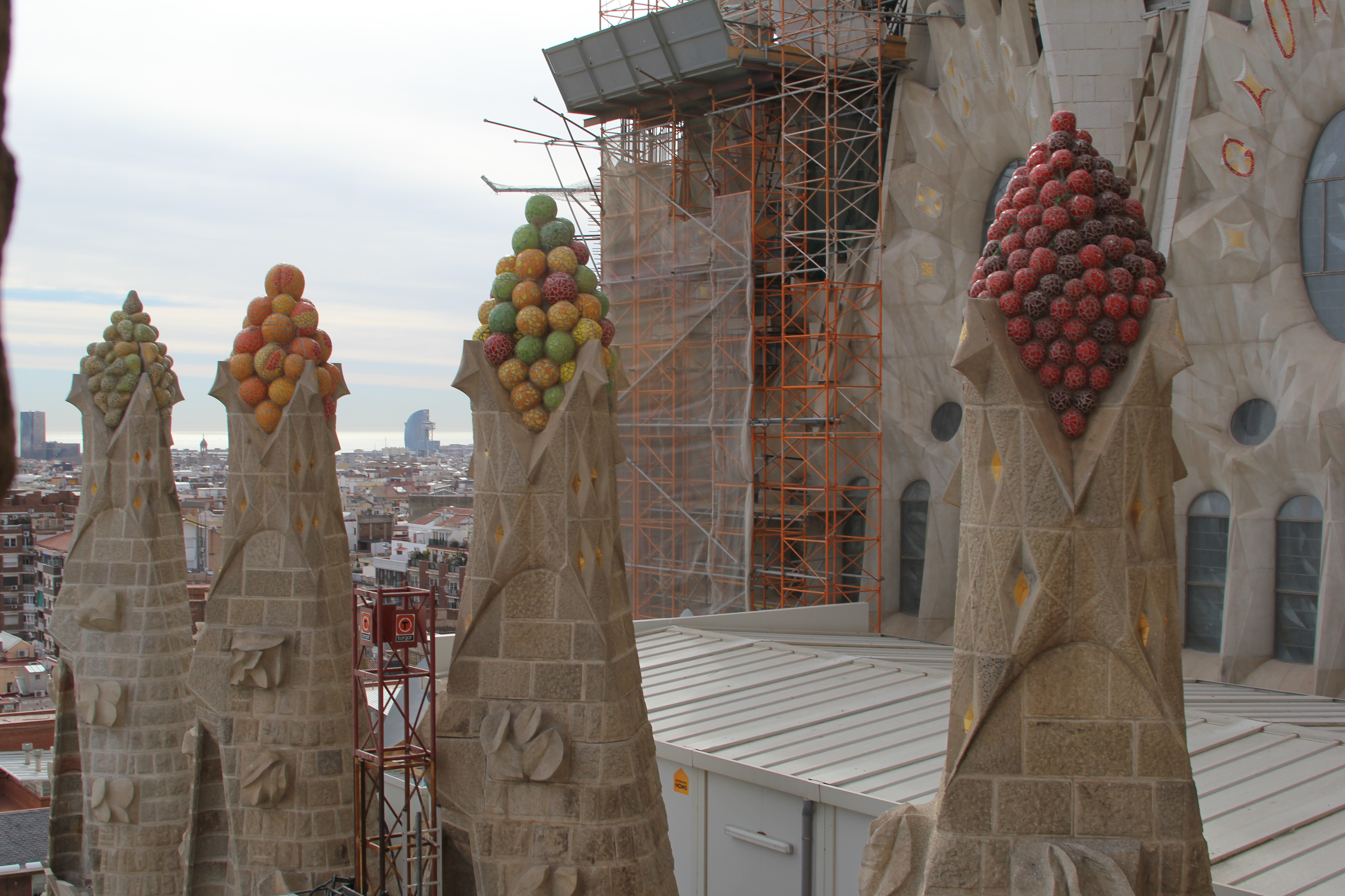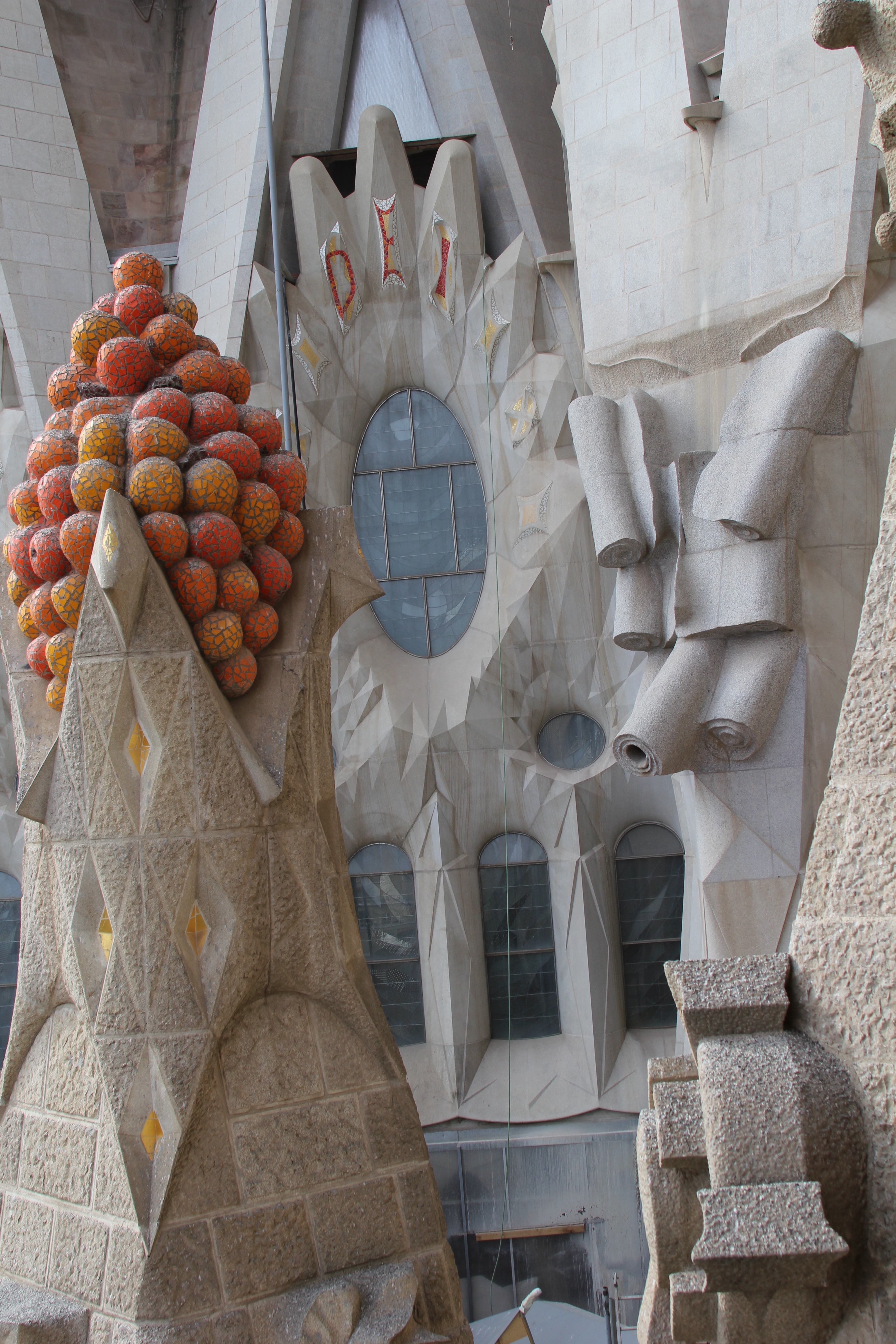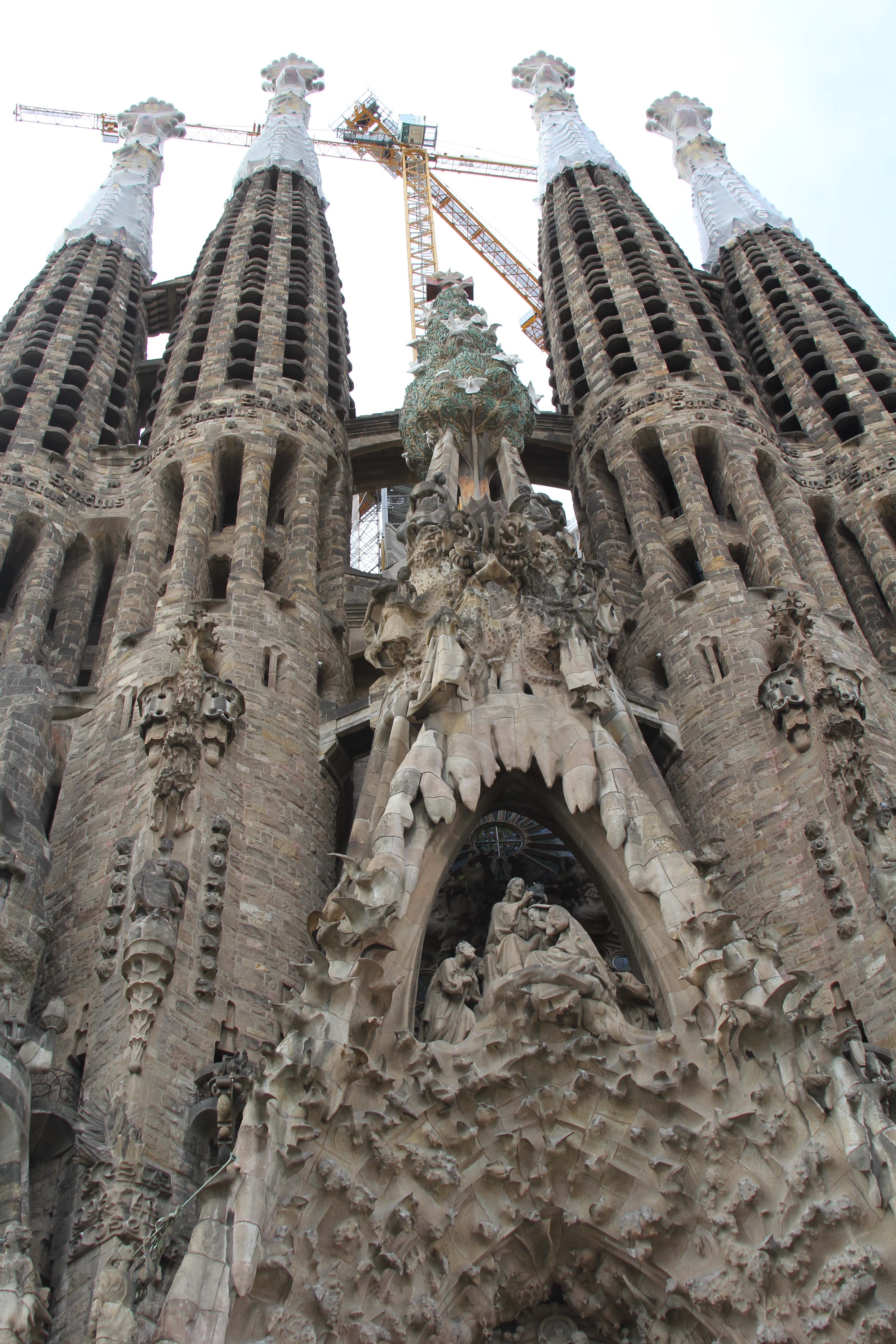 We ended our tour on the Passion Facade side which is much more angular in its design. It is being built according to Gaudi’s original plans but has sculptures added by another artist since this side is still under construction and wasn’t started during Gaudi’s lifetime.