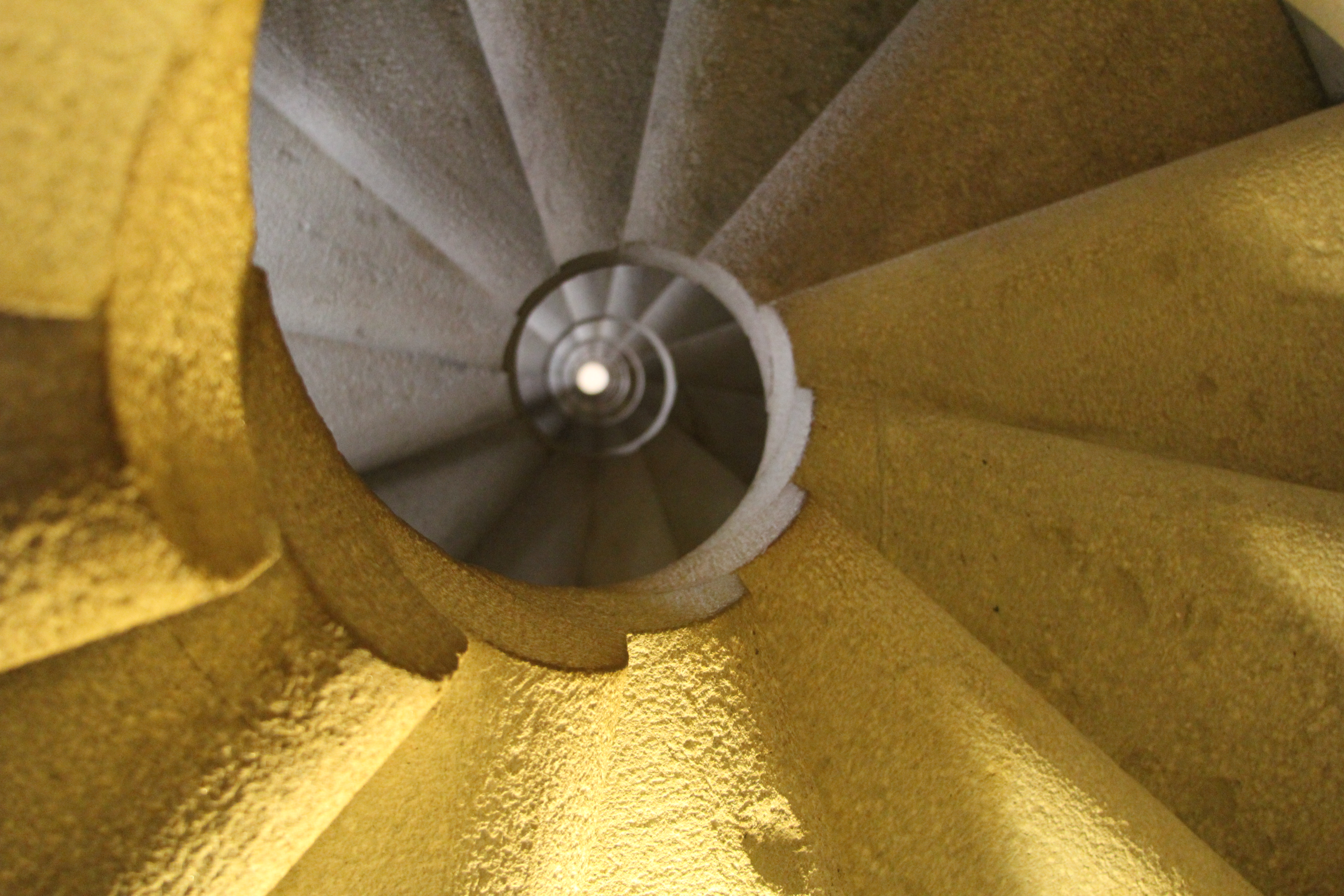 Our tickets included access to the Nativity Towers which can now be ascended in an elevator but require a walk down. 25 years ago when Tawny was here she had to make the walk up the stairs. We nearly had the place to ourselves even though hundreds (if not a thousand people) strolled around the outside and interior below. I was most impressed by the nautilus spiral stair case you have to climb on the way down – Fibonacci’s golden ratio perfectly represented.