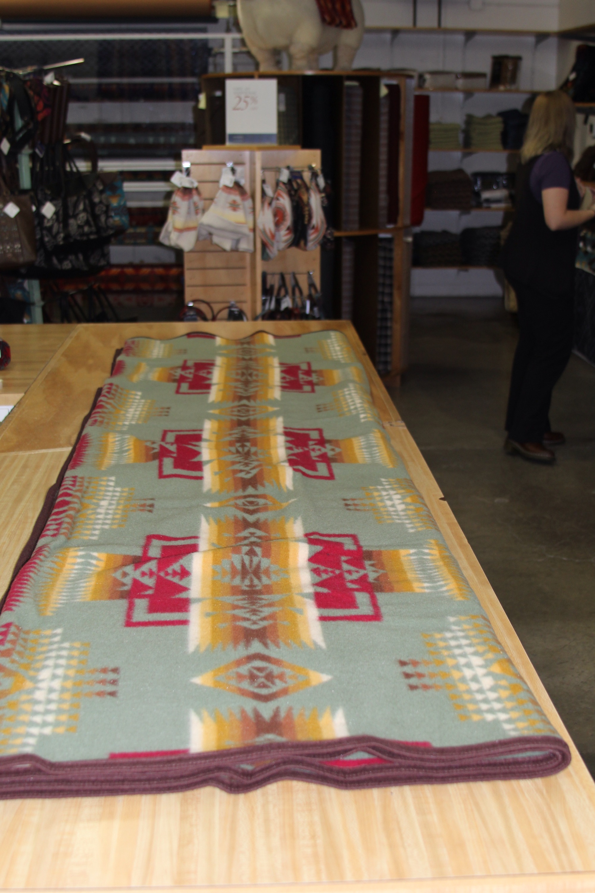 After settling we headed into town to tour the famous and long lived Pendleton Woolen Mills http://www.pendleton-usa.com. Unfortunately we arrived just after their 11am tour started and the next tour wasn’t for a few hours. We decided to shop the store instead and found ourselves the new owners of an heirloom Pendleton wool blanket.