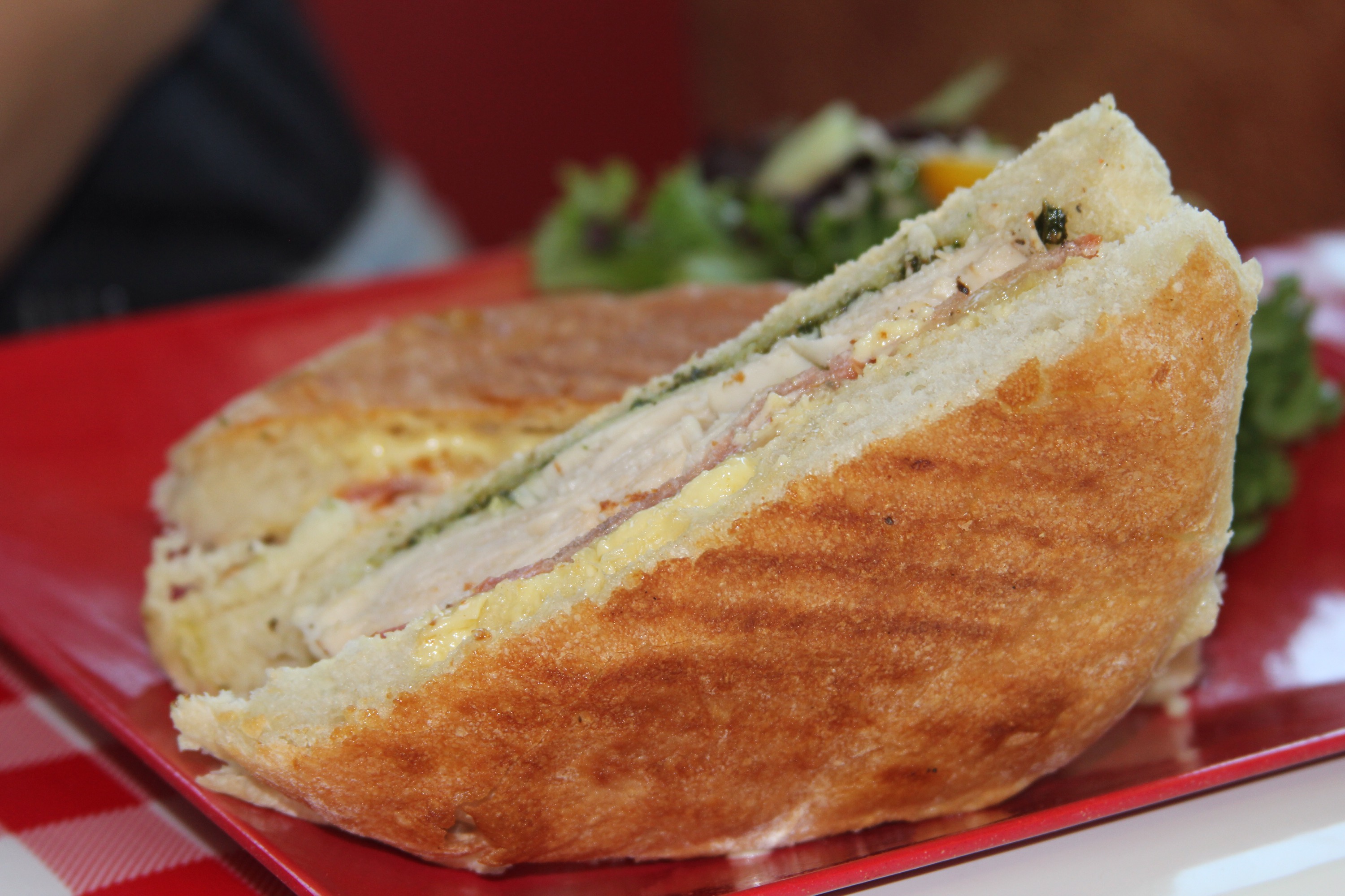 For lunch we stopped in Walla Walla at a little place called Cugini Italian Import Foods based on the Yelp reviews we saw on it: 4.5 stars with hundreds of reviews. We had to check it out. We never would have found this place (located in a rural residential neighborhood) on our own. Nor would we have been likely to randomly pull in on our own as the exterior isn’t necessarily enticing. But the food (very slowly prepared – our lunch took 90 minutes) was as Clara put it “It tastes like Italy”. Tawny’s burrata with house salami and eggplant tapenade was moan inducing. My “Godfather” panini with soppressata was worth killing for. A cucumber and tomato salad tossed in their homemade pesto accompanied it. And each sandwich came with complementary spumoni afterwards.