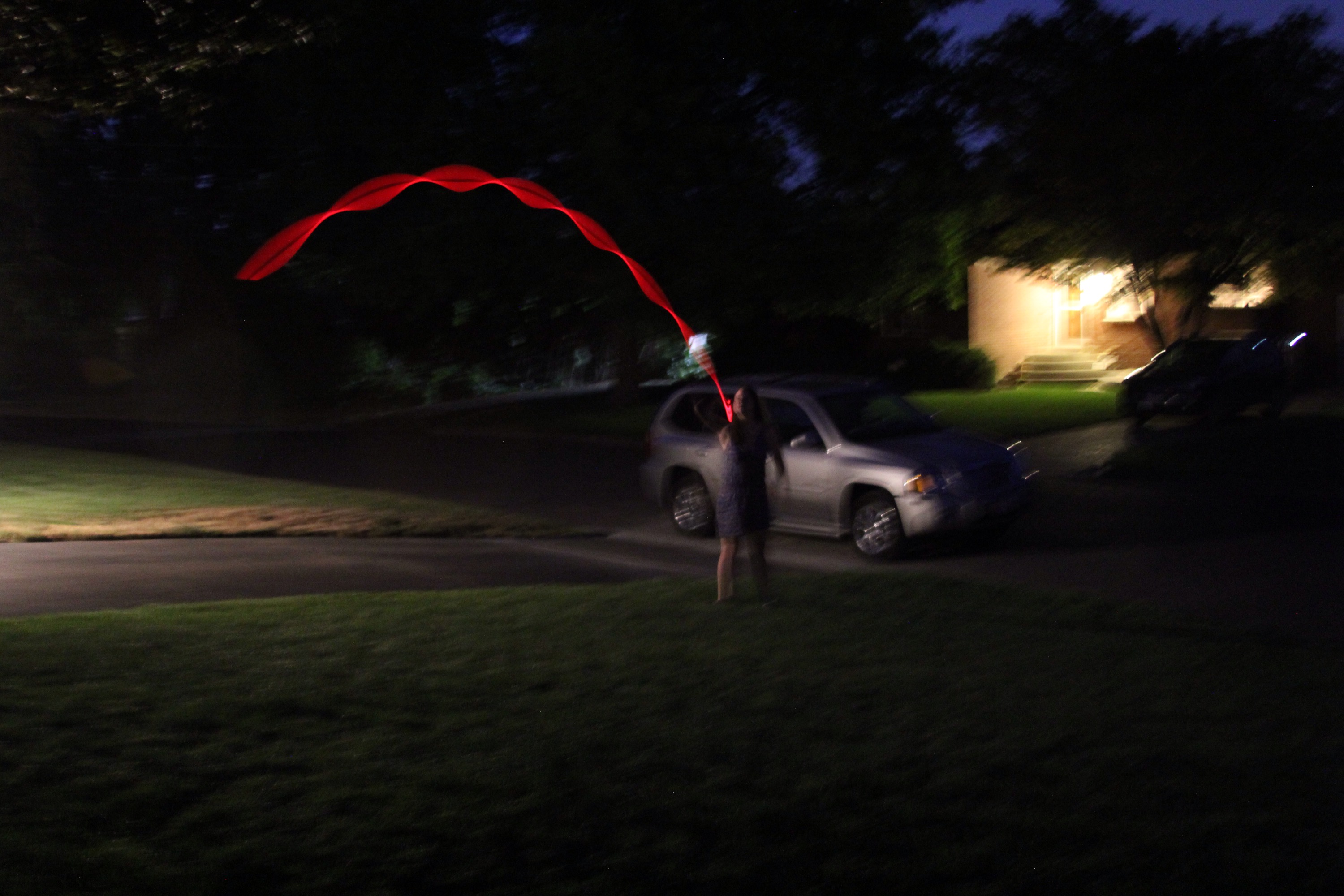 After dinner we did some had some safe and sane fun with glow sticks in lieu of sparklers in the front yard after sunset.