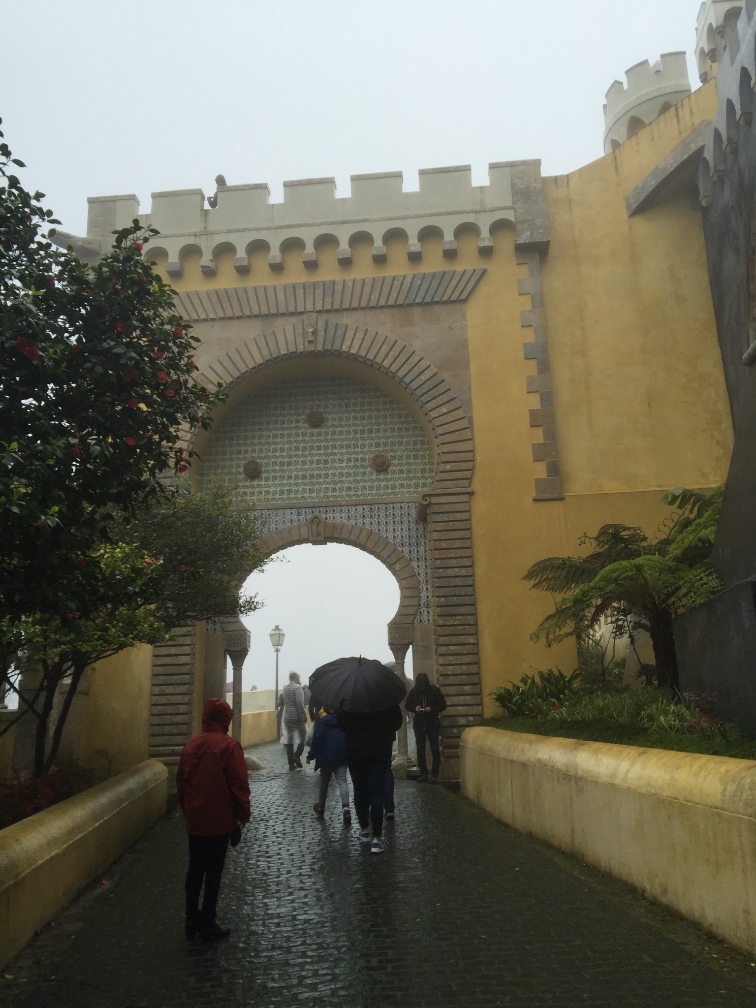 We got off at the Pena Palace stop and bought tickets for the entrance to the Palace and Park, and then more tickets for a shuttle to take us to the palace so we didn’t have to hike the hill to the castle at in the rain.