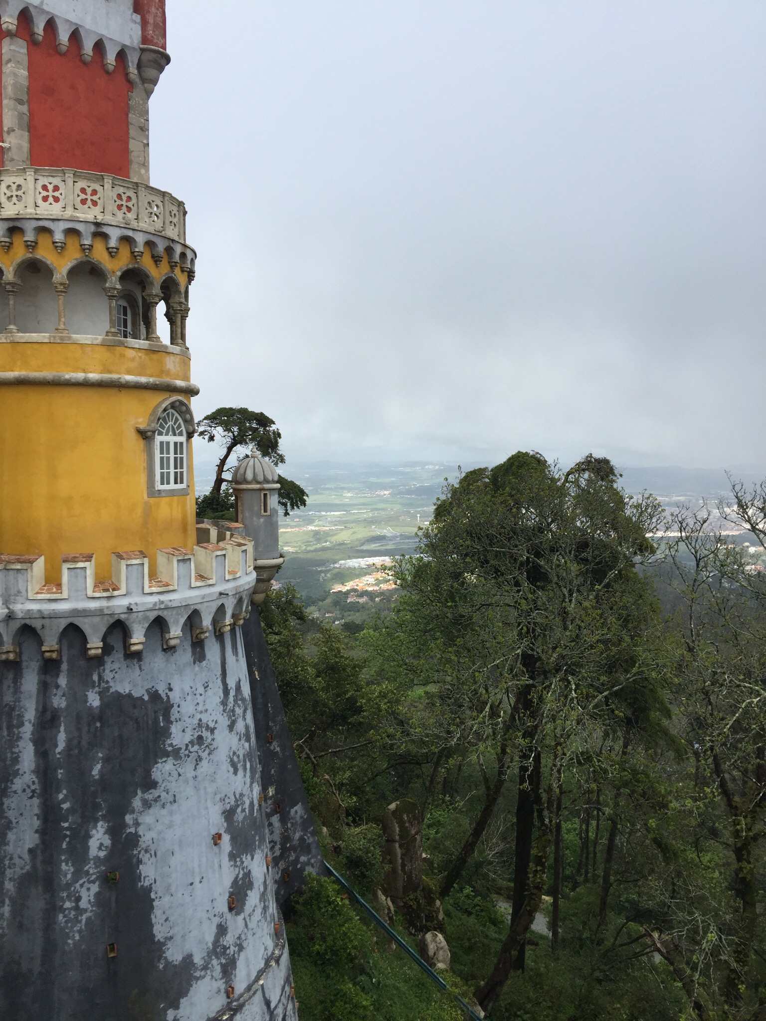 By the time the tour had ended the rain had stopped, the fog was lifting, and some sun broke through. It was now you could really appreciate the views of the Moorish castle, the villages in the valley below, and the bright bold colors and designs of Ferdinand, with many touches by his second wife Elisa. The change in weather had changed our minds and a soggy trip to Sintra suddenly become worth the effort.