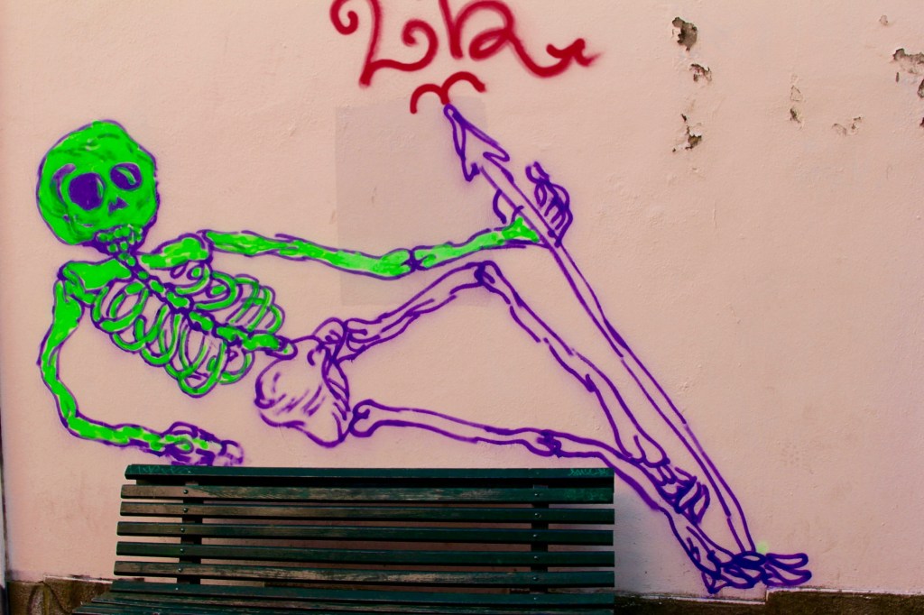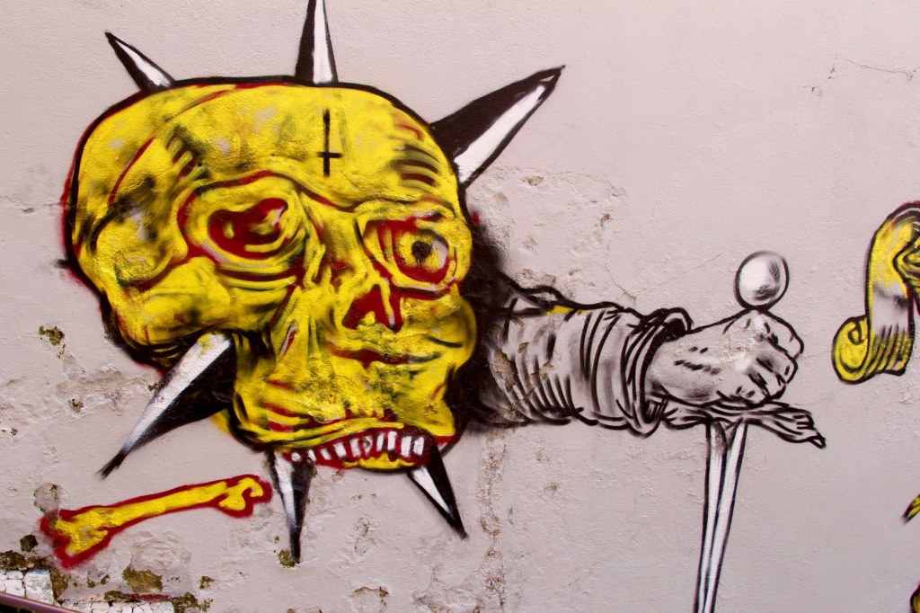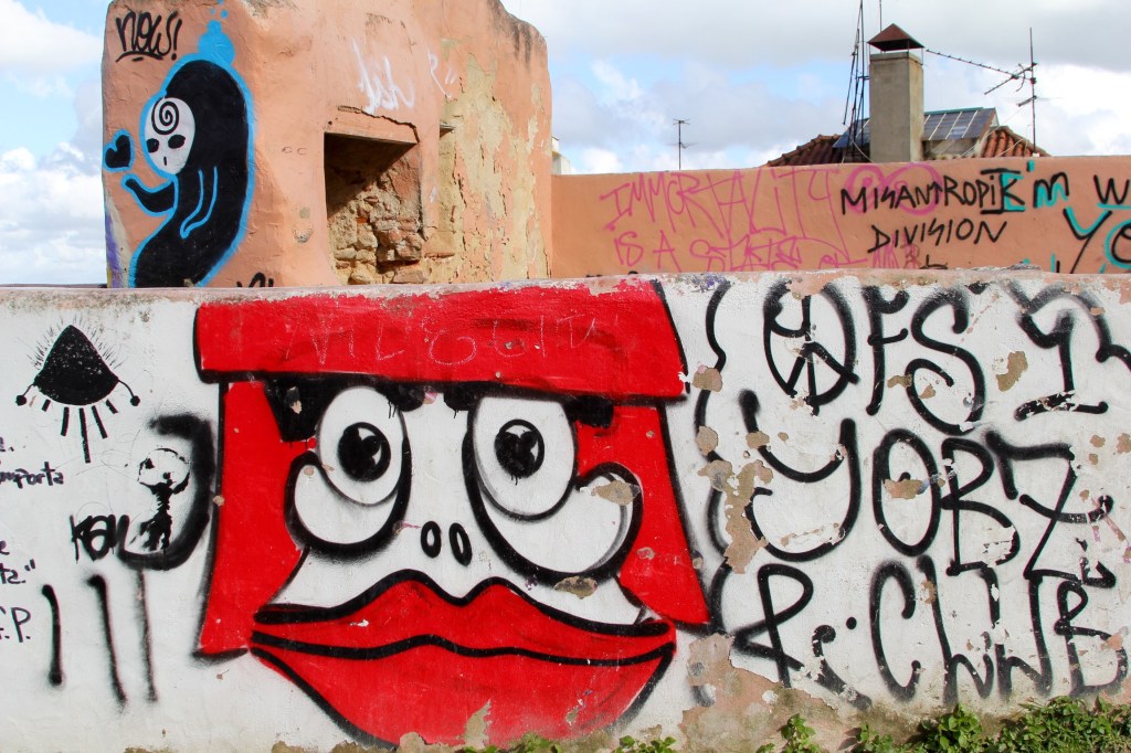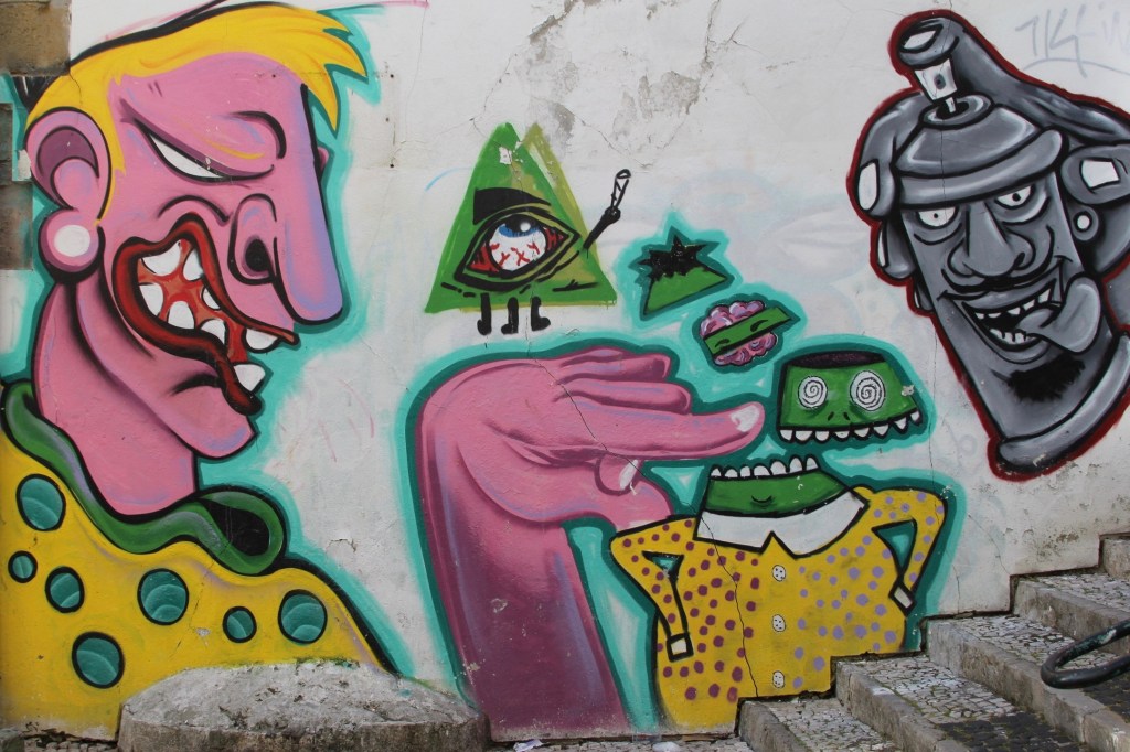 Even in Evora (where we went to visit the Chapel of Bones) is not immune to graffiti on the walls and streets of the walled inner city. And as expected we saw a lot of graffiti and street art in the crumbling alleys of Coimbra, Portugal’s main university town.