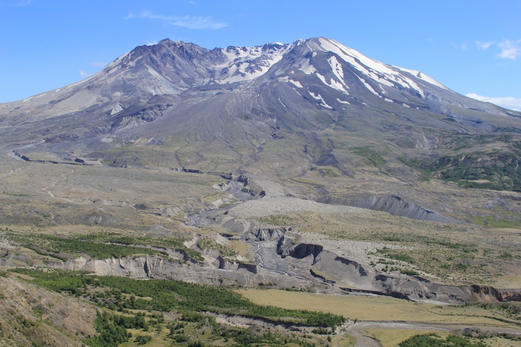 From Castle Rock we headed back up Spirit Lake Highway, past our campsite, and on towards Mt. St. Helens. It’s been just over 36 years since the volcano erupted on May 18th, 1980. I remember it well. I was about 10 years old and on a field trip on North Vancouver Island with my mother who was pursuing a Masters Degree in marine biology at the time. We were out collecting varied specimens of Chlorophyta, Phaeophyceae Ochrophyta, and Rhodophyte (or green, brown, and red algae. We were more than 600 miles away that day and at about 8:35 AM we heard a huge explosion. Some thought it may be military exercises nearby. Somebody else joked about it being Mt St. Helens since it had been in the news so much lately and it was just a matter of time. Nobody took it seriously, but somebody – perhaps my mother – said, “Take note of the time, it just may be St. Helens!” Indeed, it was. After returning home to Anacortes we learned that my father and sister said our dogs had gone crazy at the explosion (250 miles away) and that they hadn’t head the explosion. Apparently the sound wave traveled up and over major metropolitan areas such as Seattle. Days later we got a phone call from my grandmother in Tulsa, Oklahoma telling us their cars were dusted in ash from the explosion. That awesome power left a lasting impression on my 10 year old psyche. One I’ve never forgotten.