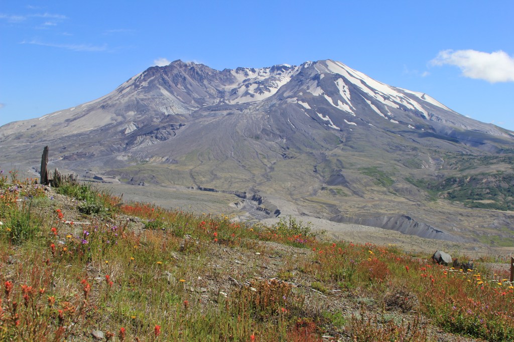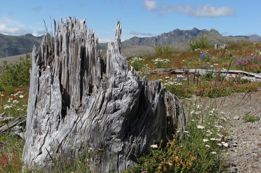 The devastation of the area is still evident and stark, but softened by a colorful blanket of new life flourishing in the form mountain lupine, paintbrushes, lupines, and mountain daisies.