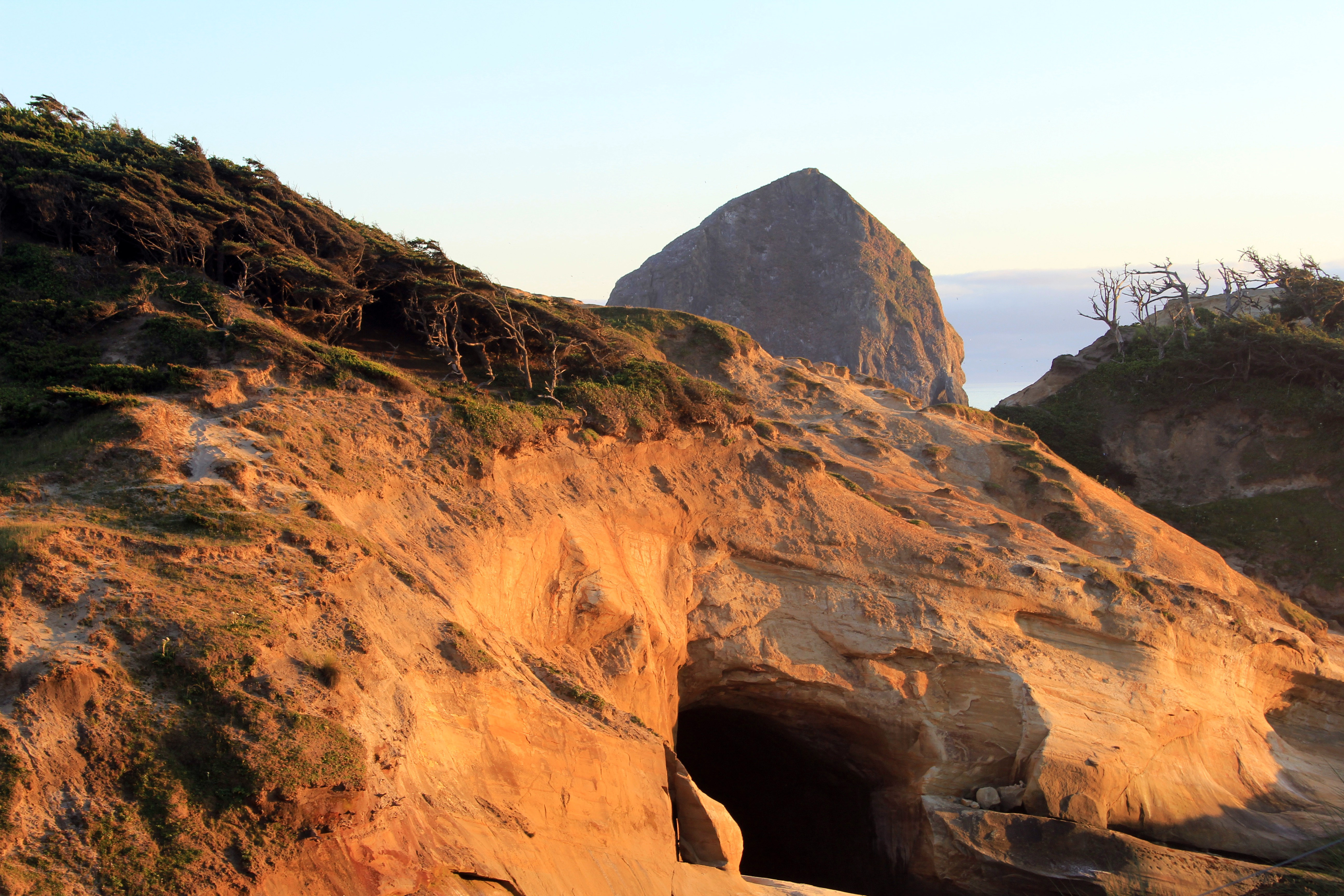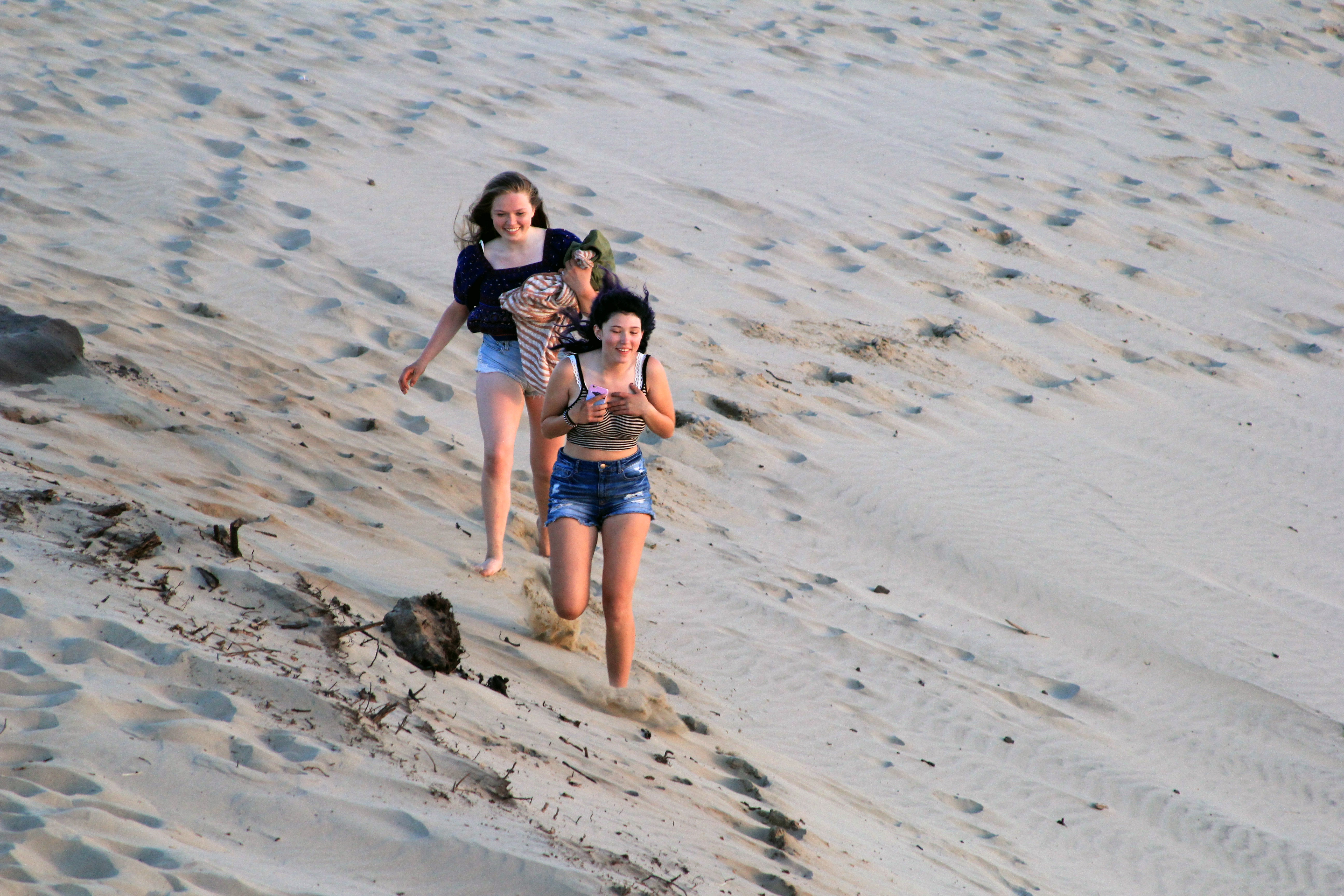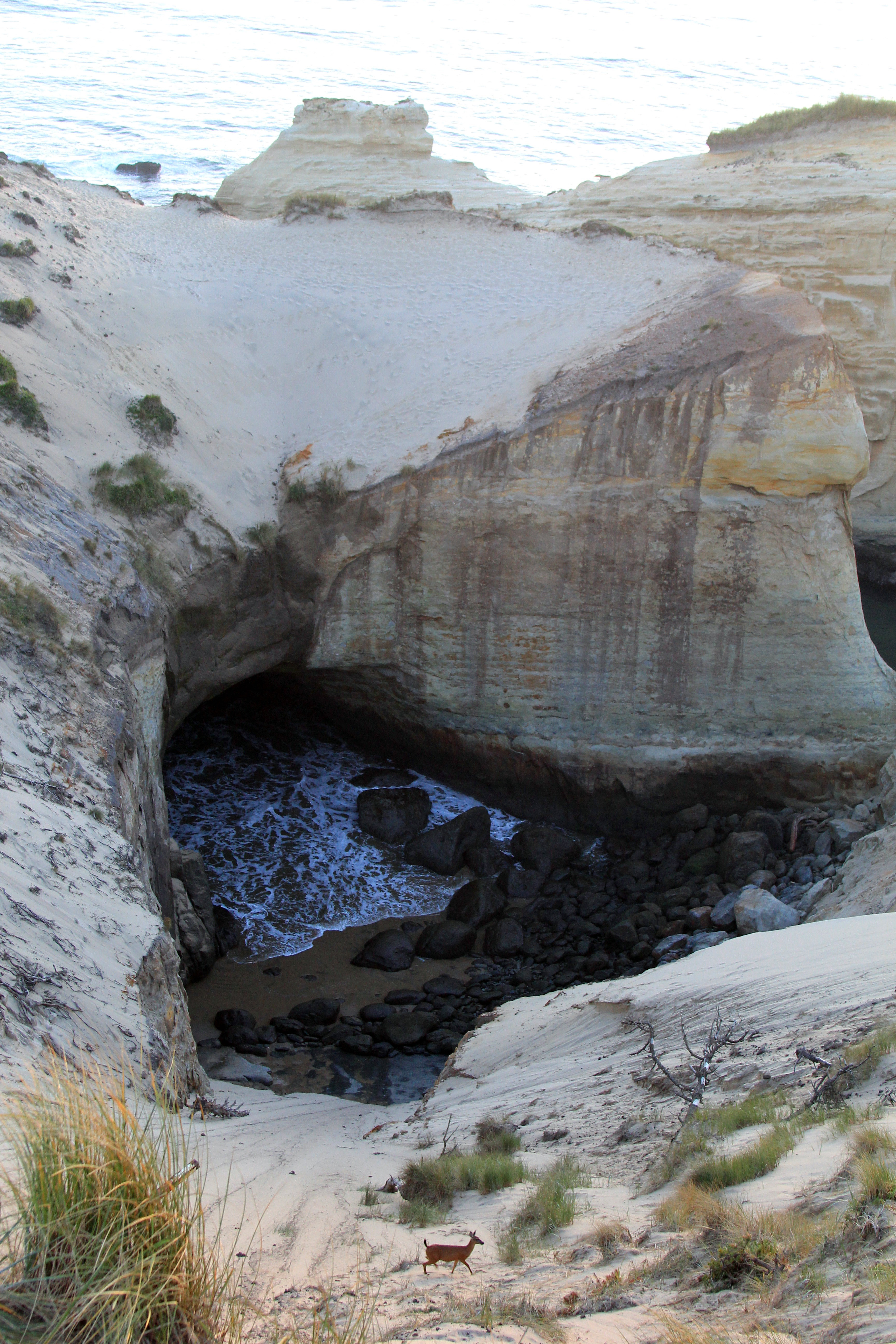 While I retraced my steps from earlier in the day Clara and Morgayne decided to take on the steep sand-walled ascent. The views on the way were similar to those earlier in the day, but bathed in magic-hour light. As I walked through a small wooded area towards the top of the dune I encountered a deer making its way home for the evening.