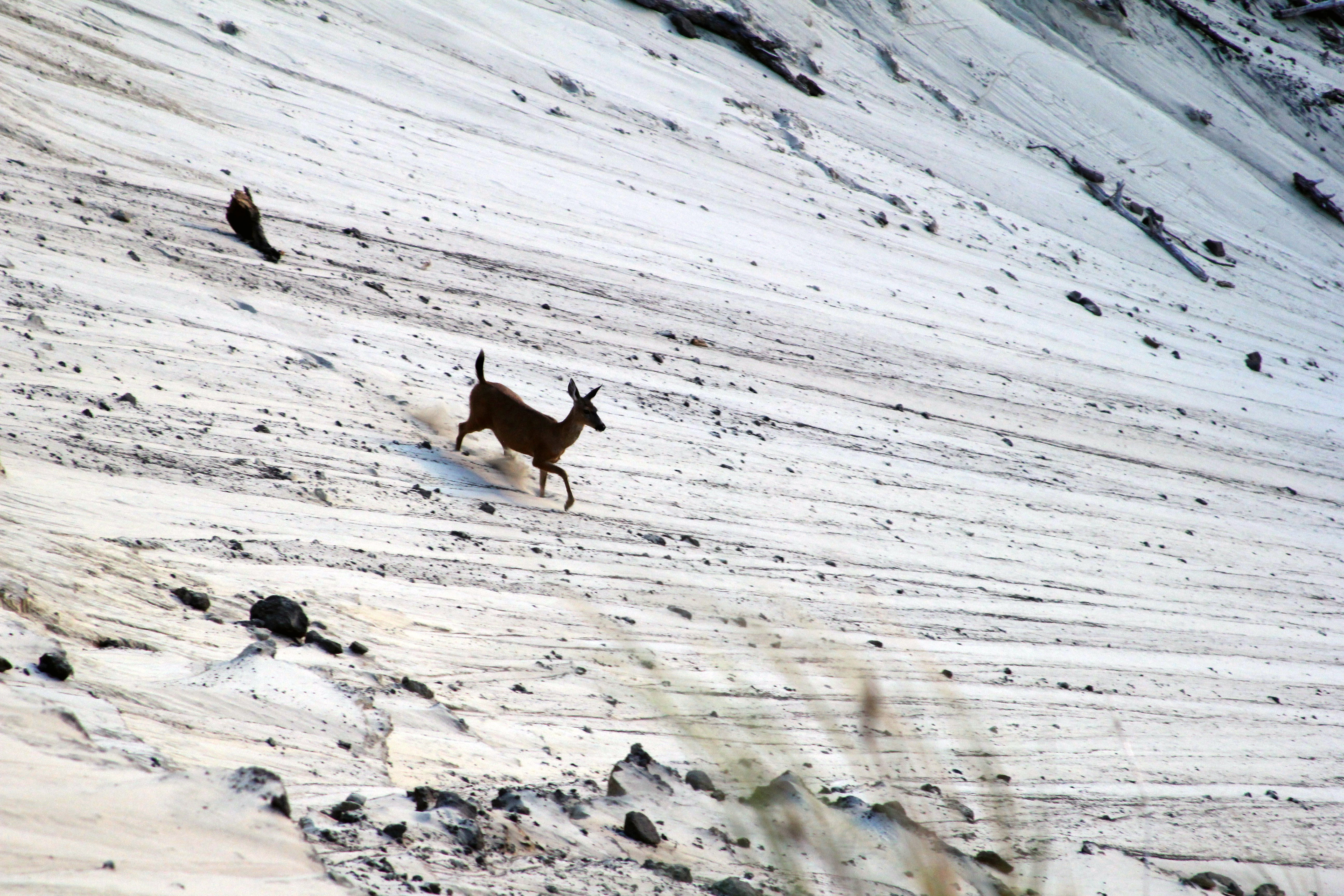 As the girls reached the top we all spotted the deer again, running across the steep west facing slope off-limits as far too dangerous for us.