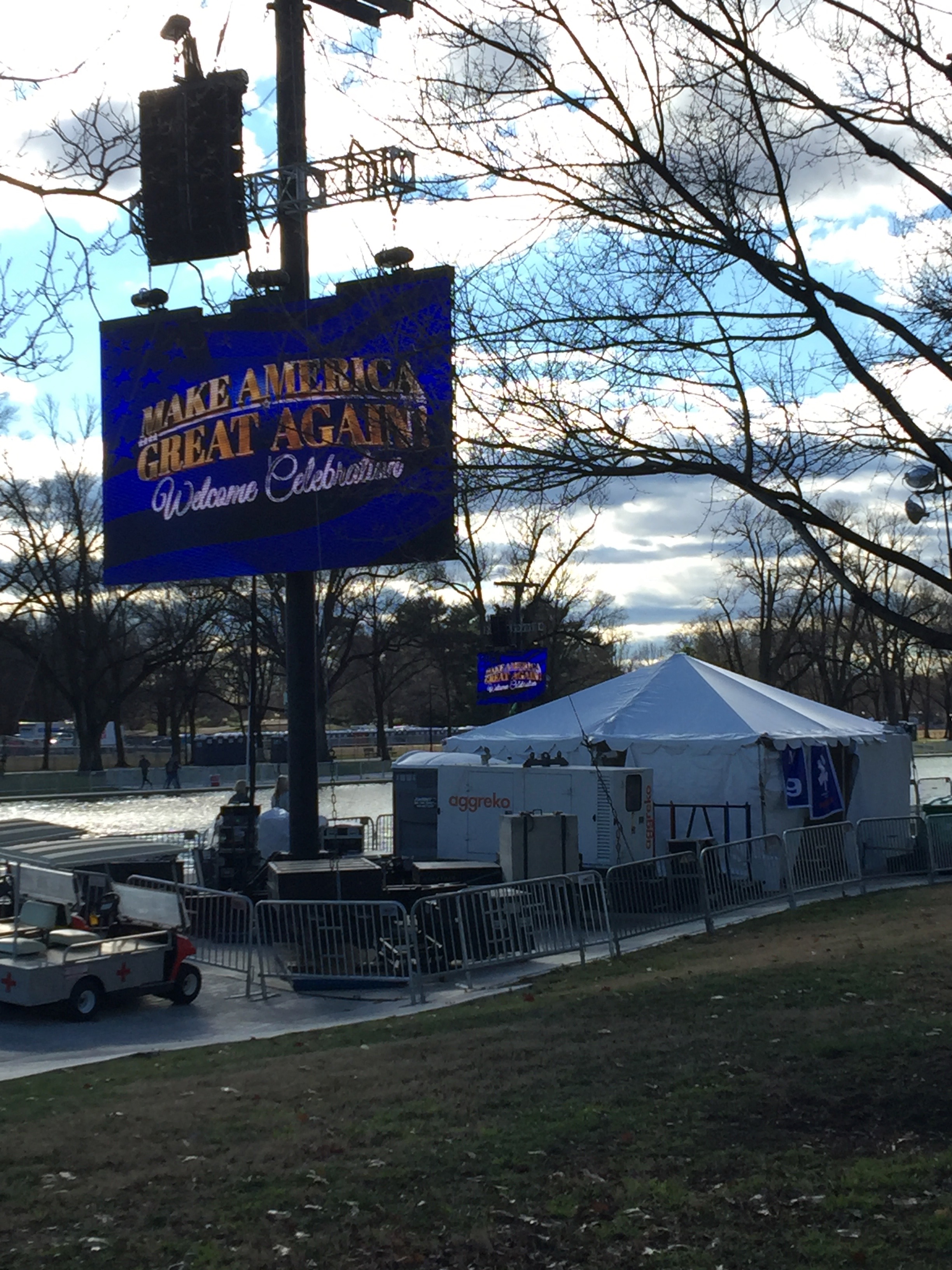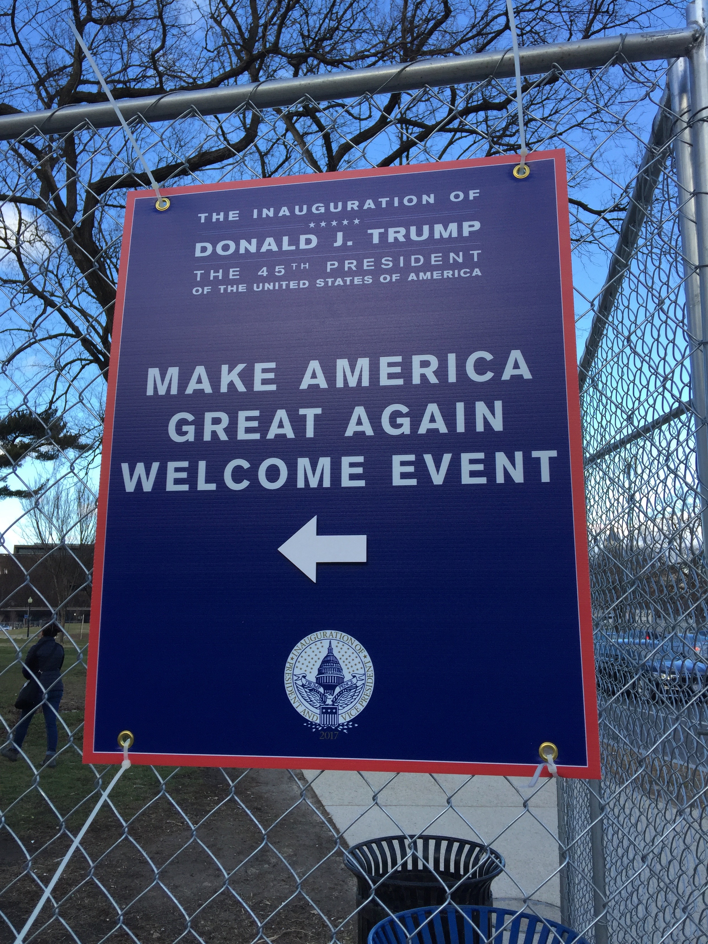 We tried to walk by the White House (Obama had just given his last press conference) but the security was too tight and the impending parade route and barriers kept us beyond eyes length. I did see this one sticky note stuck on a nearby sign which seemed simple and fitting enough.