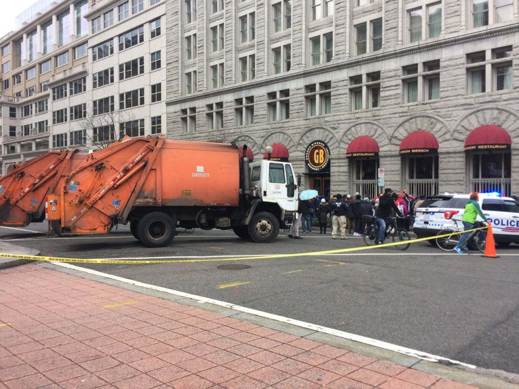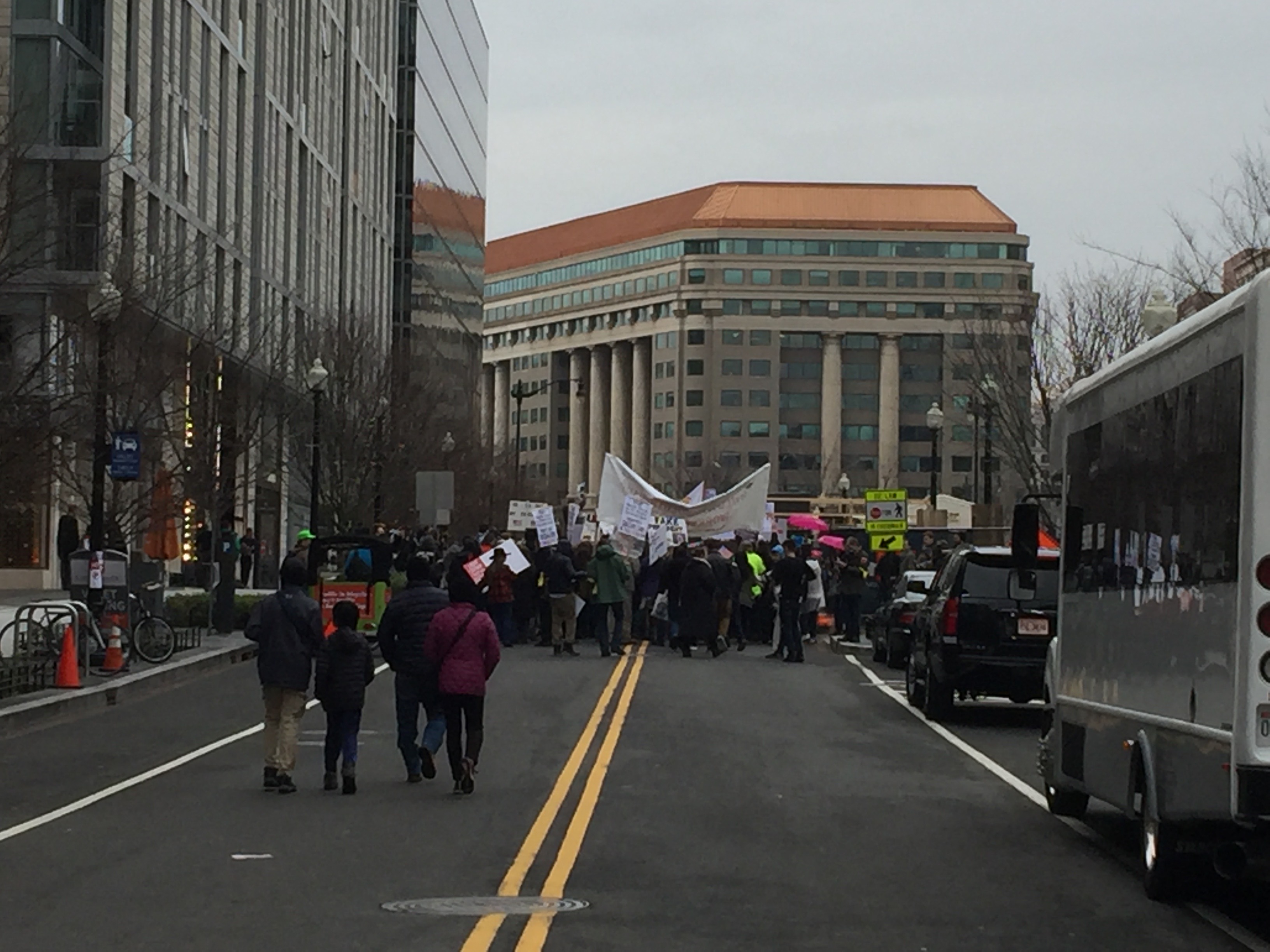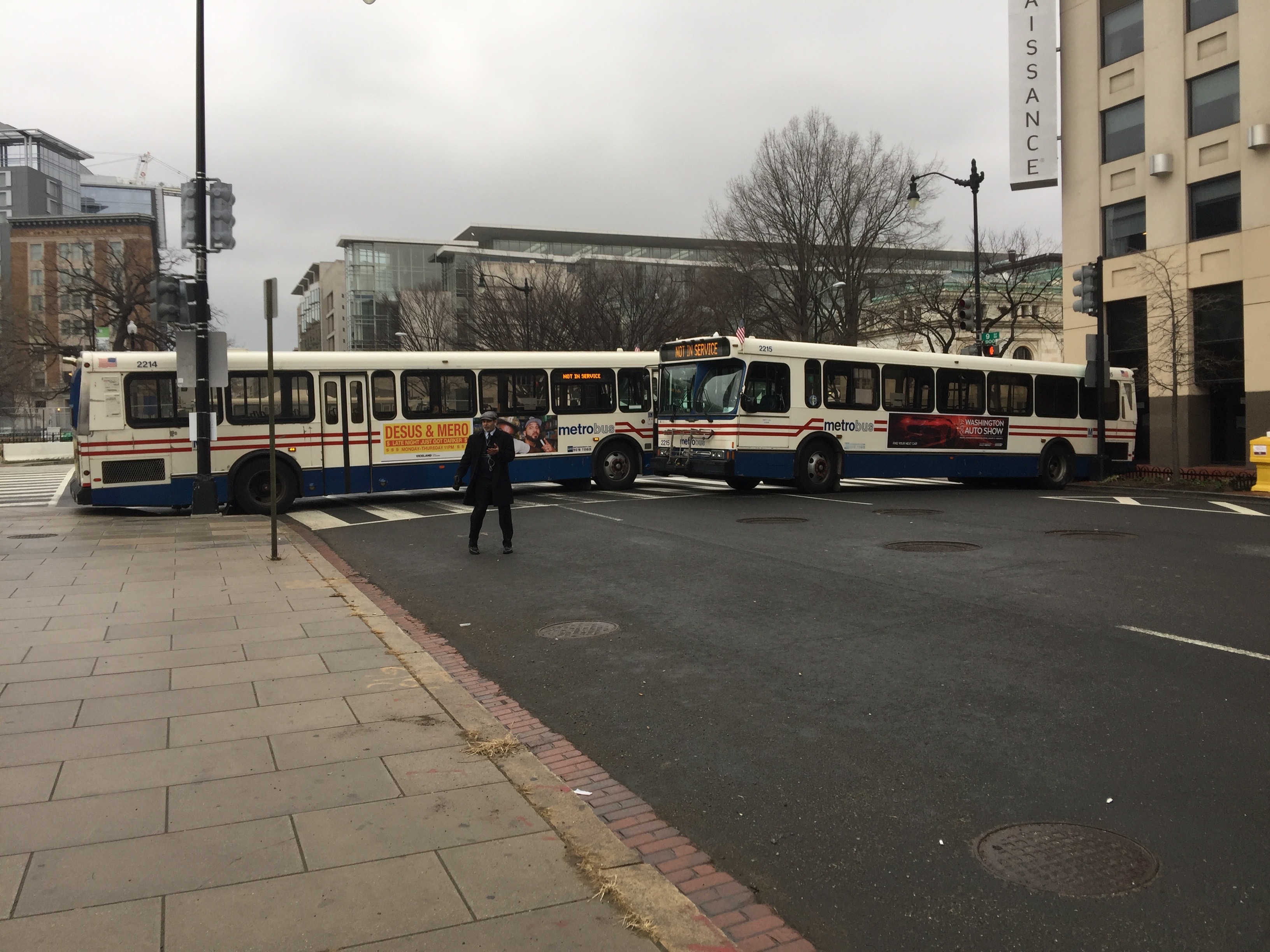 We exited our hotel to a maze of chain link fences, snow trucks and busses blocking the streets, police in full riot gear, helicopters overhead, protesters in the street. We were in full on inauguration day in Trump’s America.