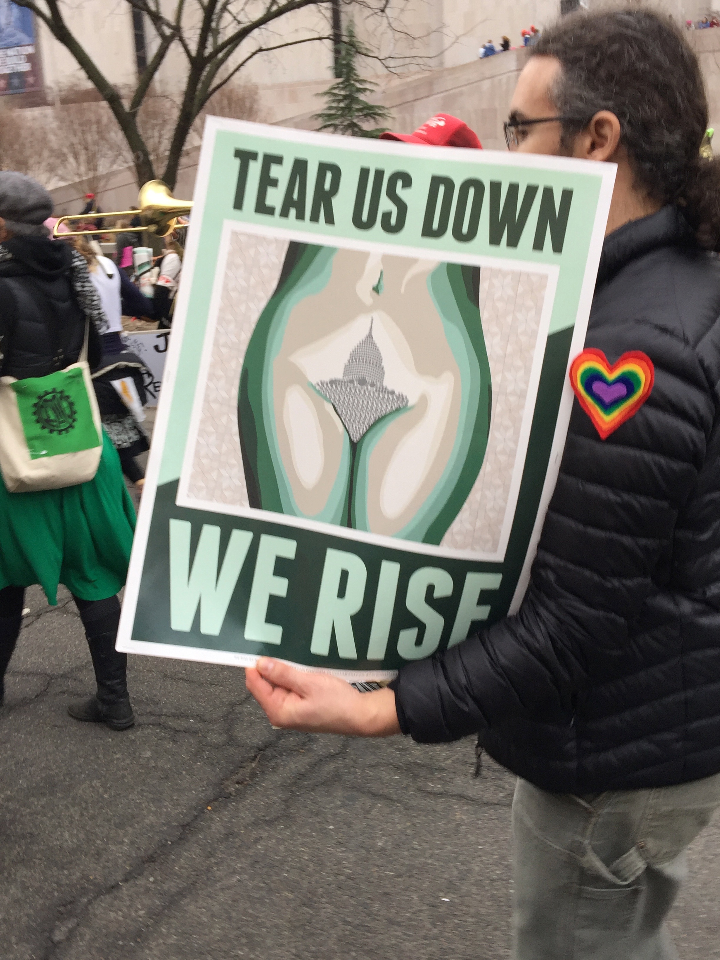 We got stuck at 7th between Madison and Constitution for a long time trying to get off the mall and march down Constitution towards the White House. It took a long time but we finally got through. We then found ourselves at Trump International Hotel where thousands of people had started dropping off their protest signs.