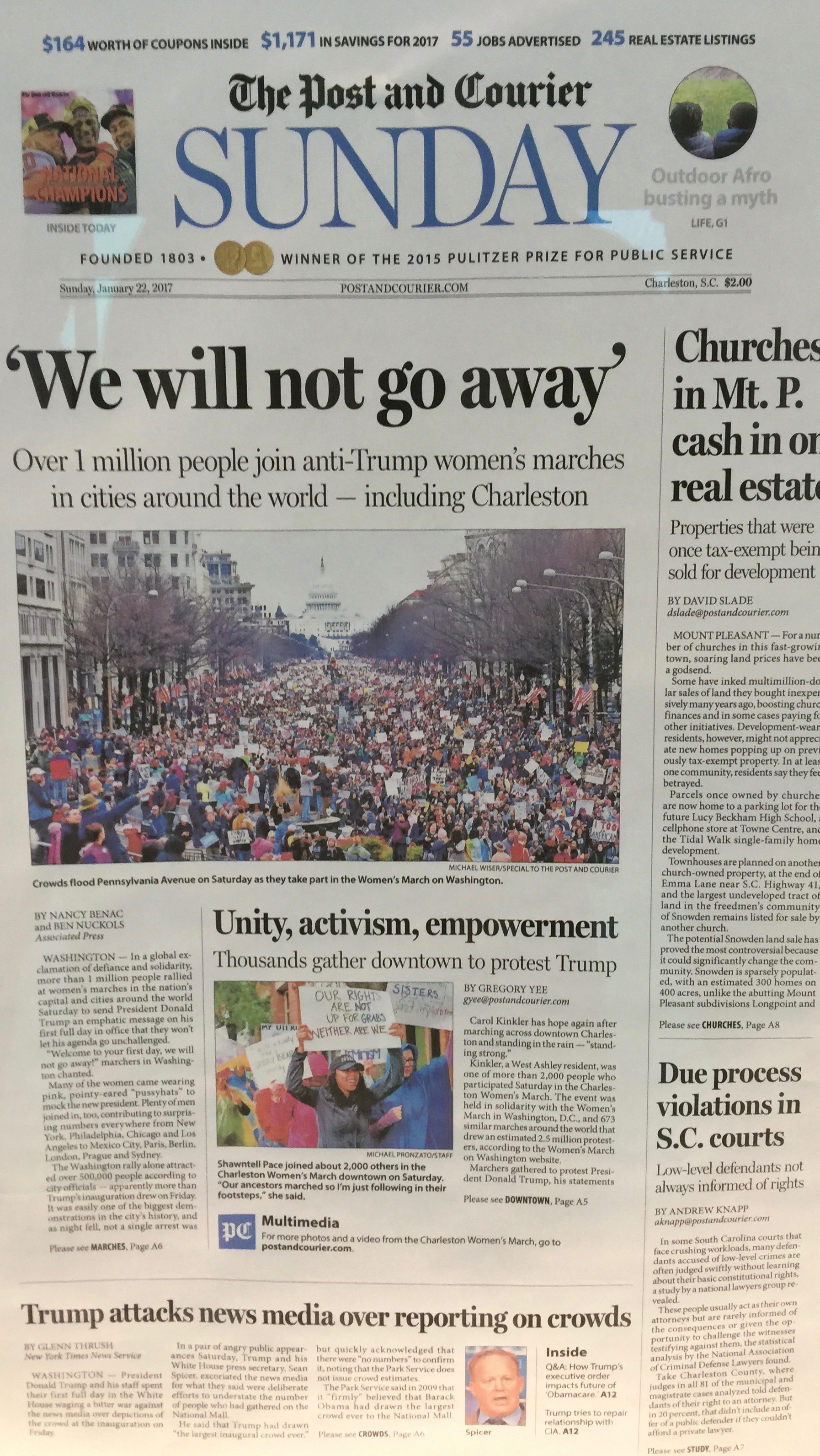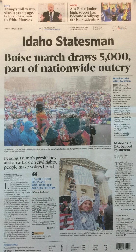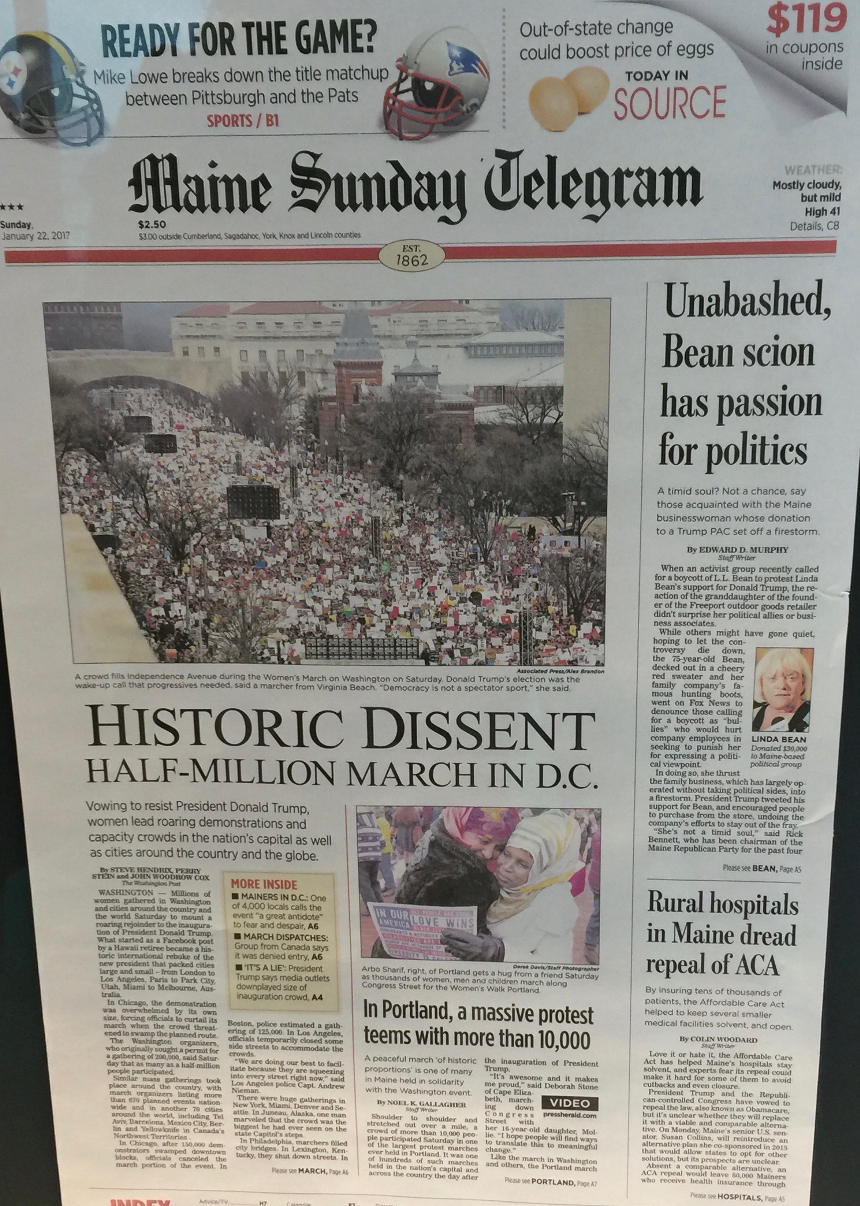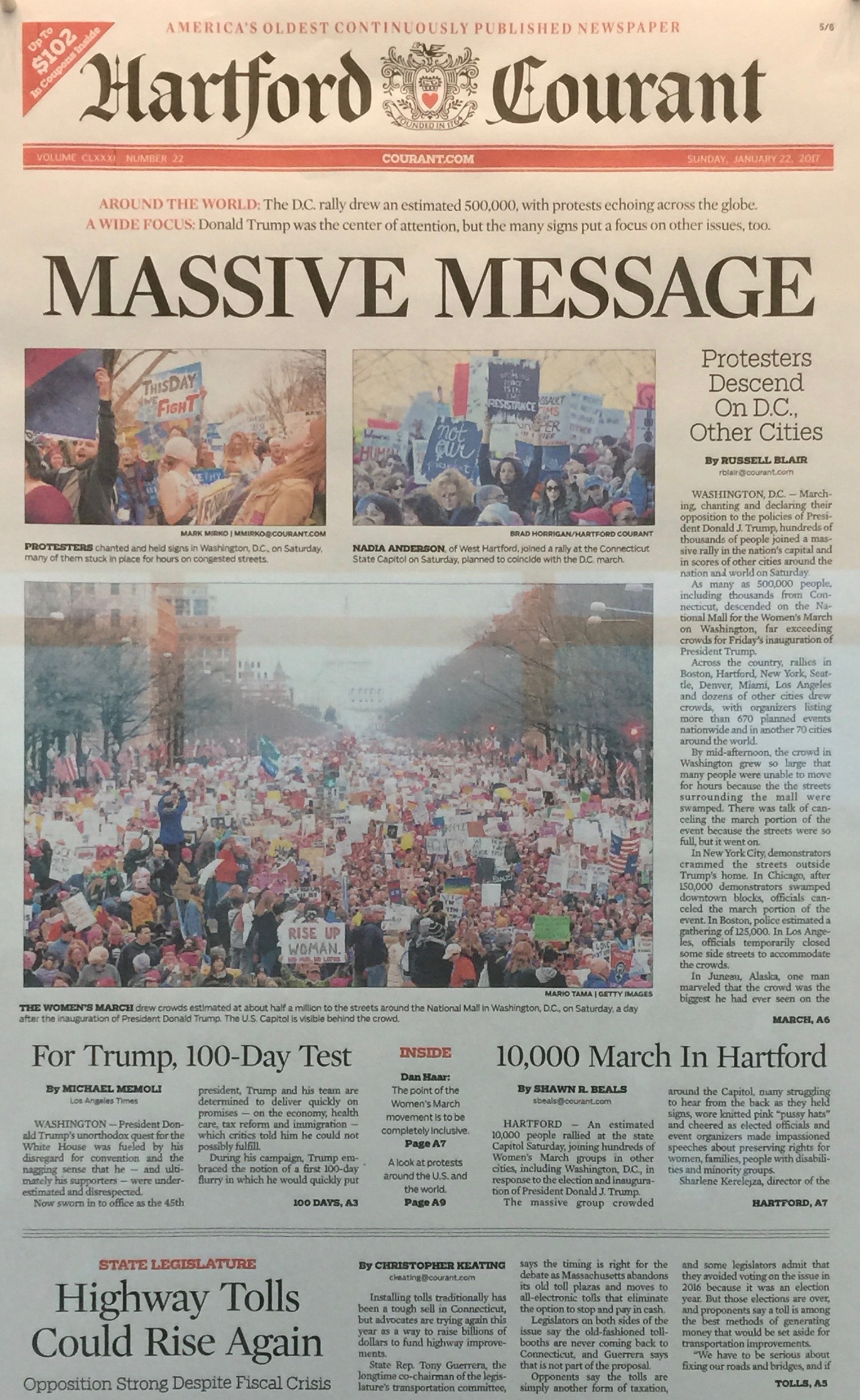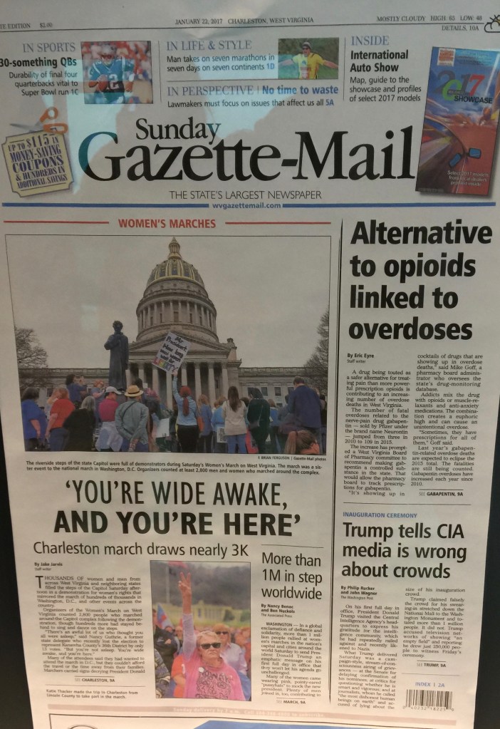 We were with hordes of humanity (estimates from 600k – 1m) marching in DC who were loving, enthusiastic, and united. It was a great day only made better by meeting some friends we haven’t seen for years at another José Andrés restaurant – Zaytinya. We had a great dinner (the restaurant was packed! The waiter telling us it had been near empty all week but today had been a madhouse). Then we stayed up late with our friends drinking in our room and watching Saturday Night Live. Brilliant! In particular, the segment on Kellyanne Conway was amazing. It was shocking to see her on Meet the Press the next morning telling Chuck Todd that Sean Spicer’s first official announcement as White House Press Secretary was presenting “Alternative Facts”. You may know these by their more common name: Lies. Defending Sean Spicer blatant lying to the whole world about the size of Trump’s “hands” inaugural attendance, (puny when compared to the Women’s March) was just mind-numbing. Not to mention Trump’s visit to the CIA during the Women’s March to declare war on the media and complain about his size.