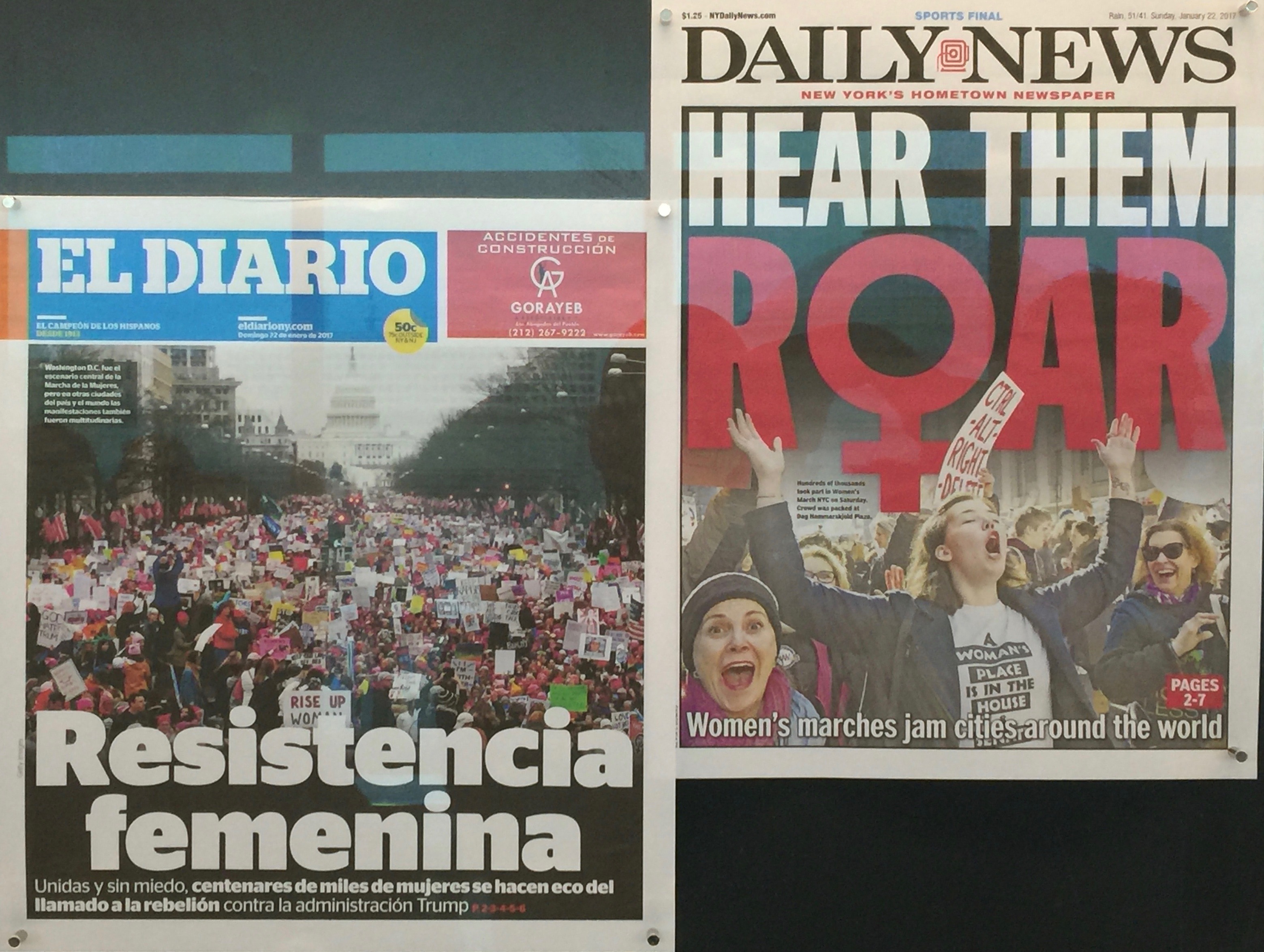 The first thing we saw while waiting in line to get in (and more on display inside) were the front pages of today’s newspapers from around the country and the world. Here is a sampling of about 50 of them: