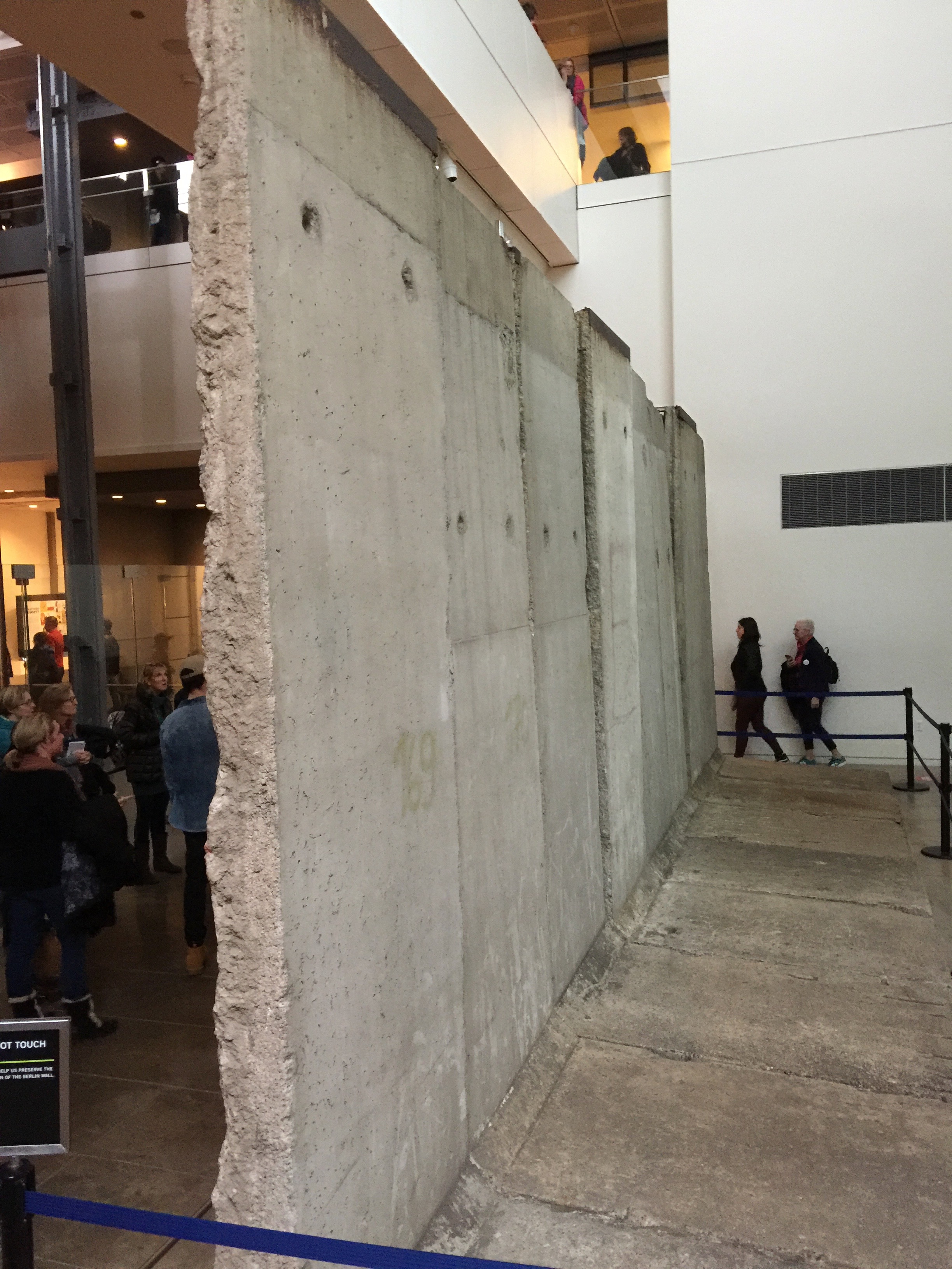 There was another exhibit on the Berlin wall (with a watch tower and a section of the wall). You walked from the West Side to the East Side and experienced differences in the first (and other) amendments. It was bleak to realize how much some of the East Berlin sides sounded like Trump’s rhetoric.