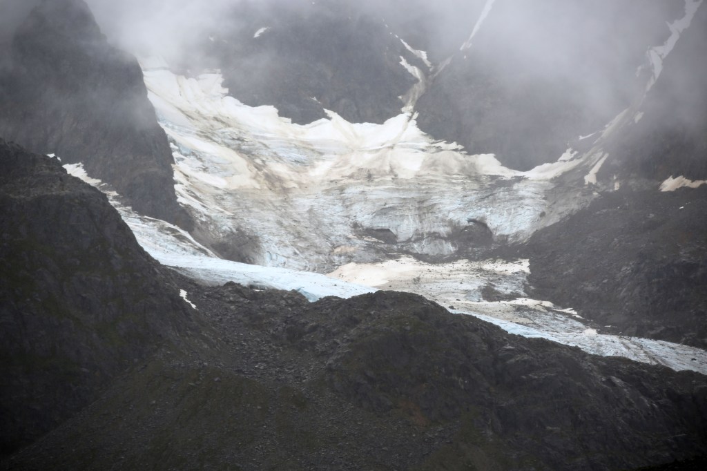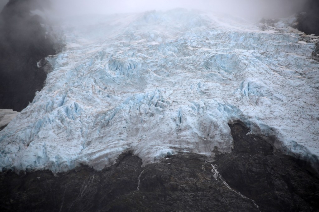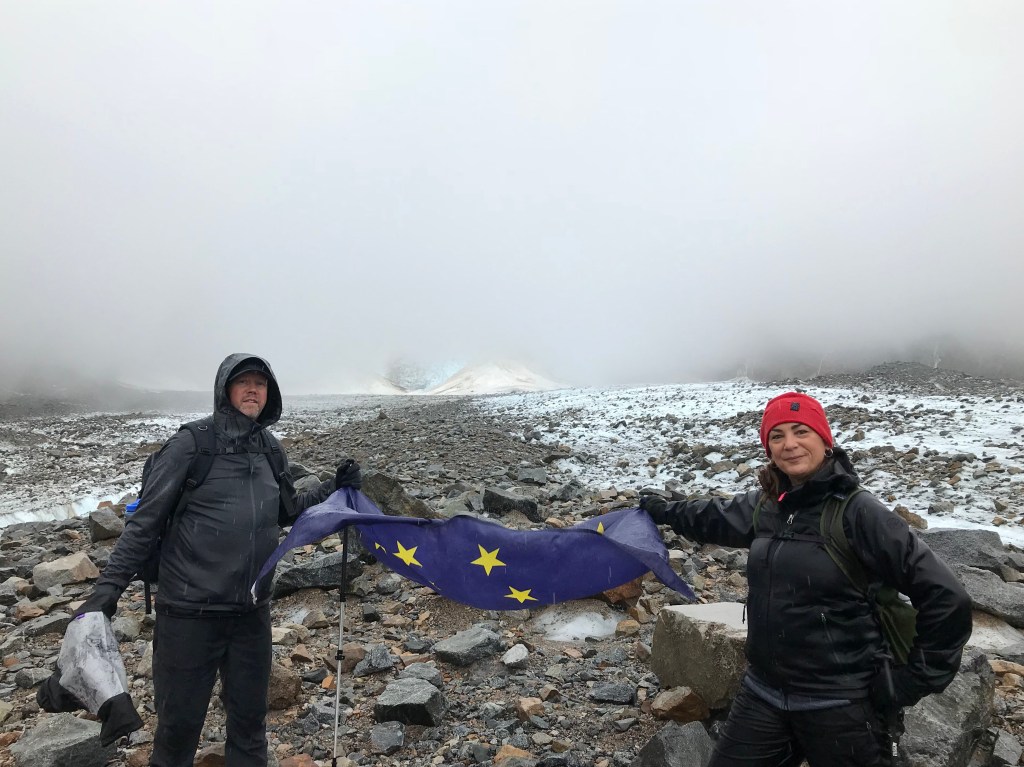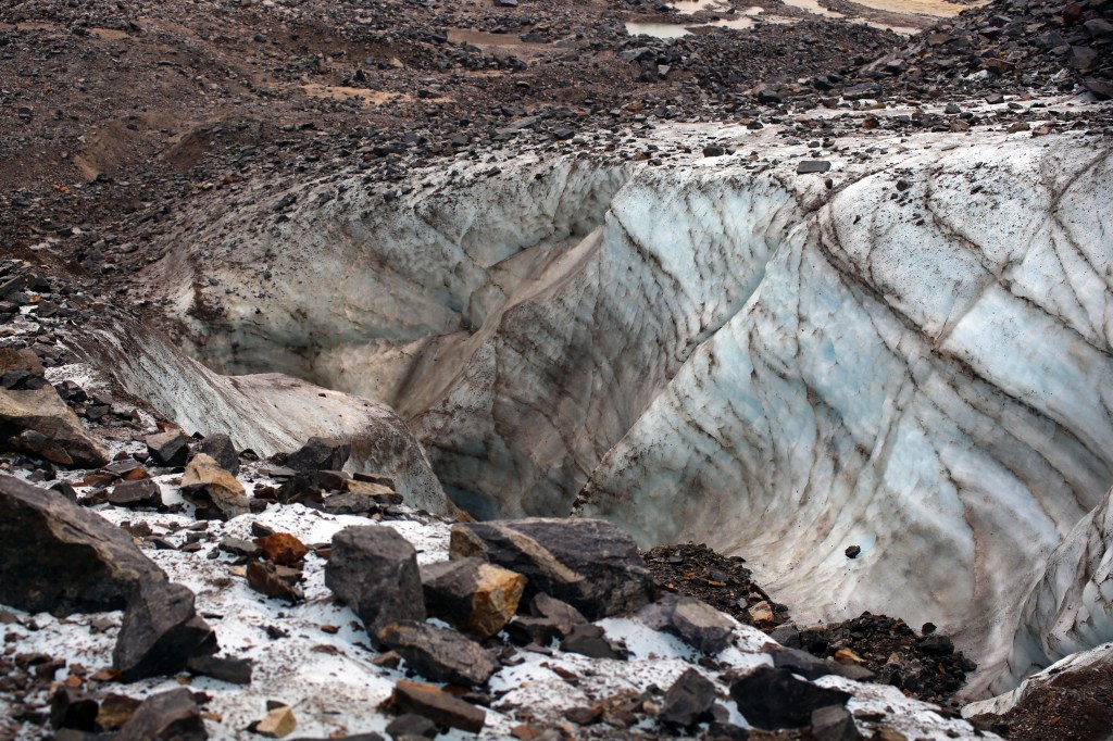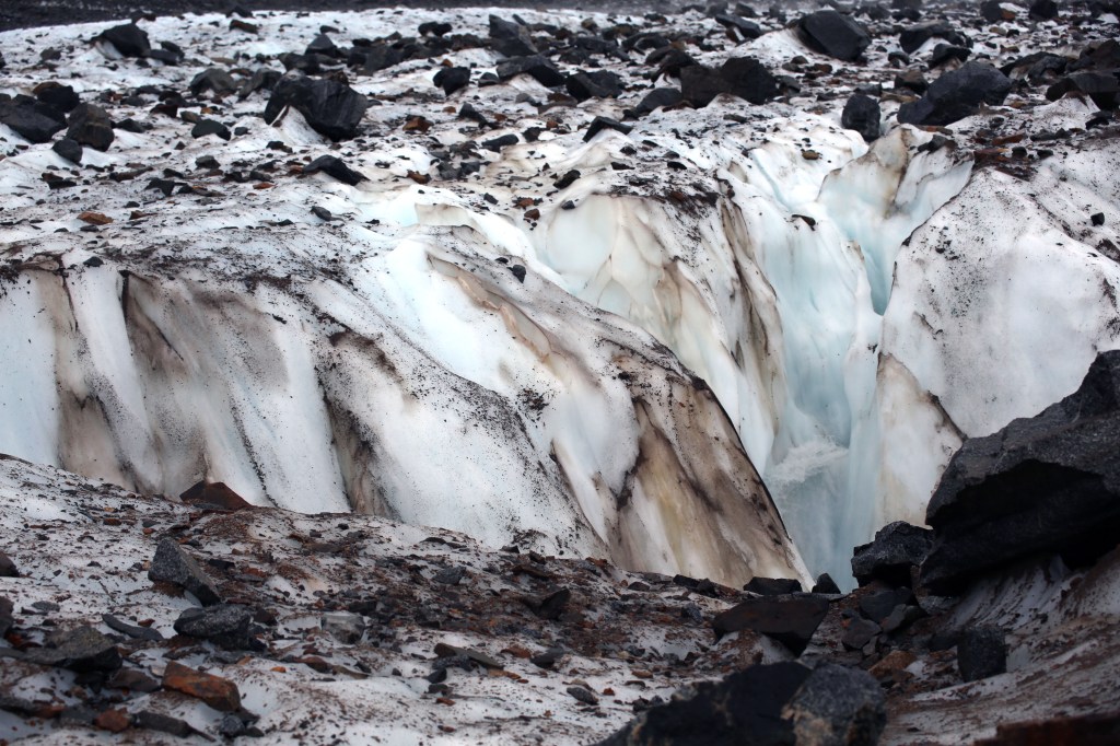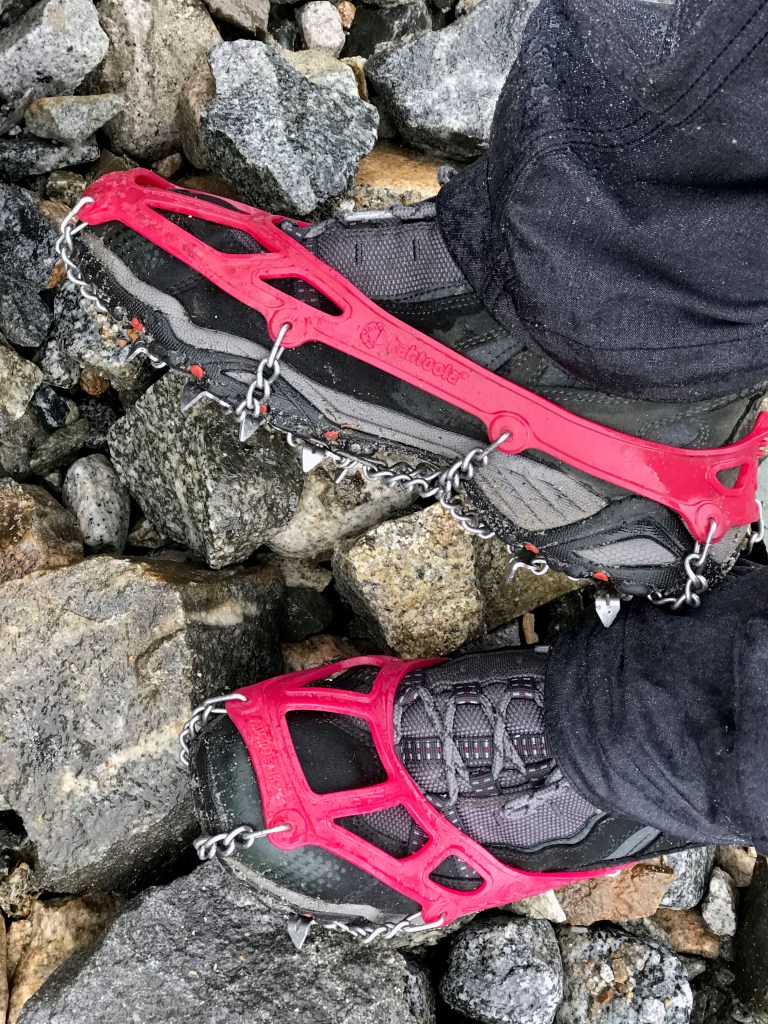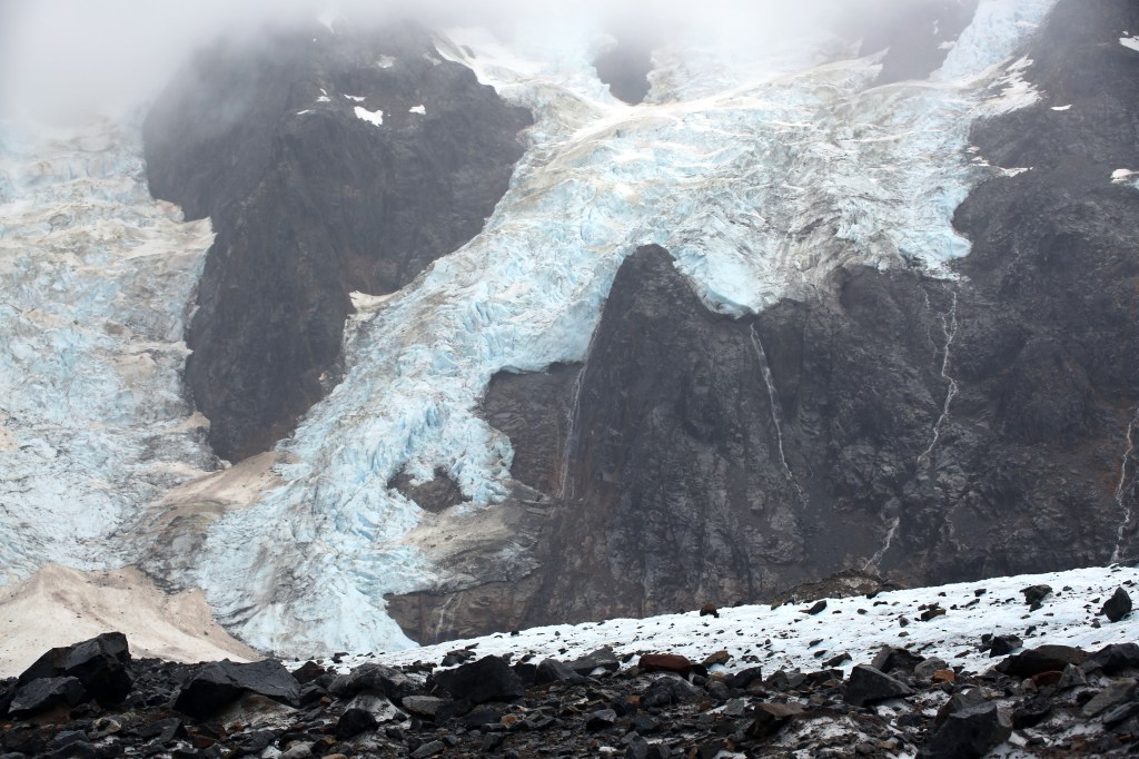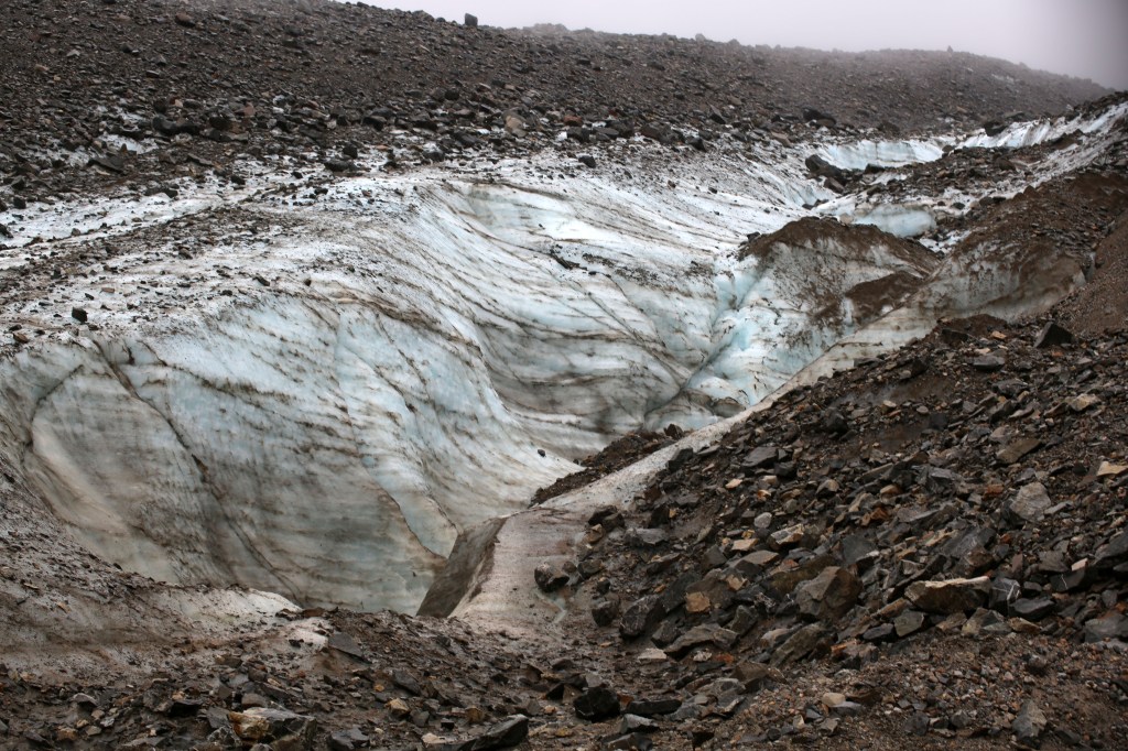 Arrival at the glacier brought us chills. It was cold. We were soaked. People were wringing out their hats and gloves as we prepared for the next portion of our hike by affixing our crampons to our hiking boots for another 30-minute hike up the glacier.