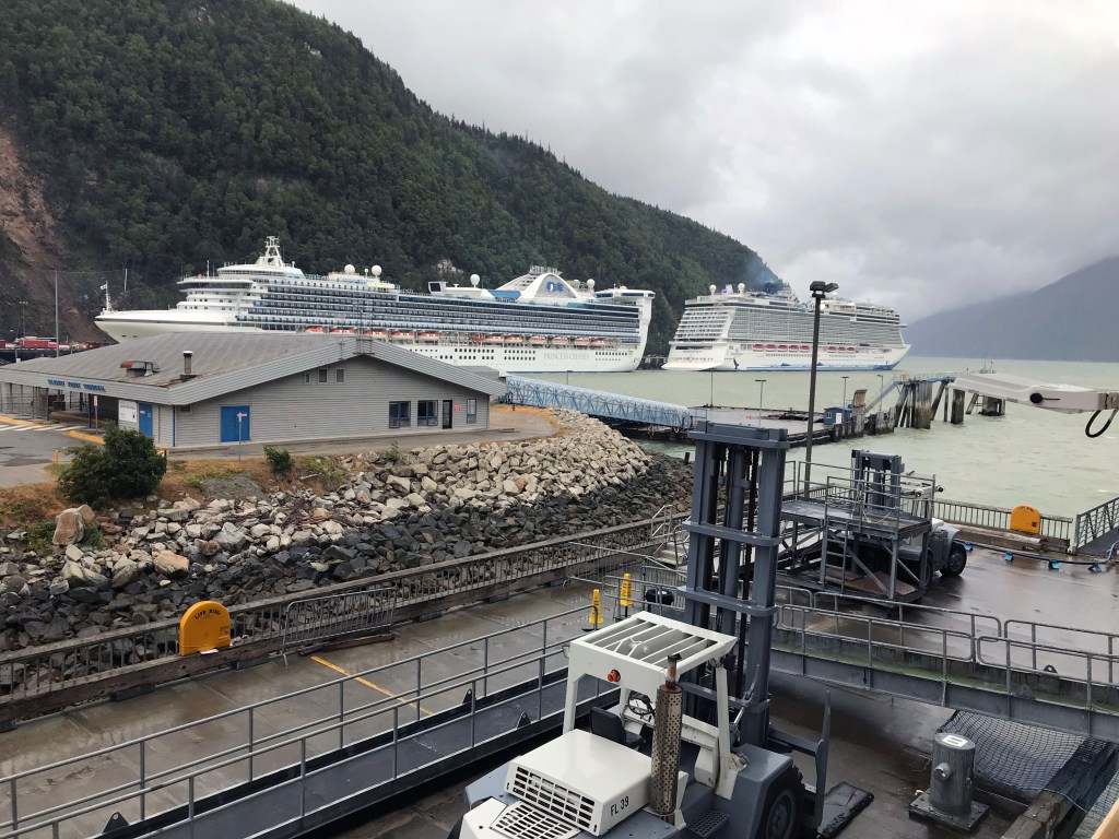 7:15am: Funneled by the narrow Lynn Canal, near gale force winds (according to the Beaufort scale) and driving rain met us as we met Rylan, our guide from Packer Expeditions, for the 8-mile 9-hour round trip hike to the Laughton Glacier.
