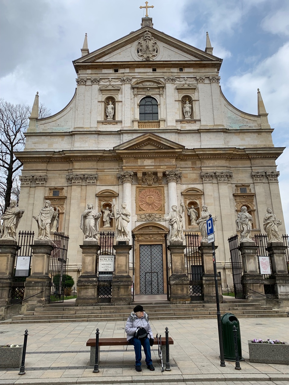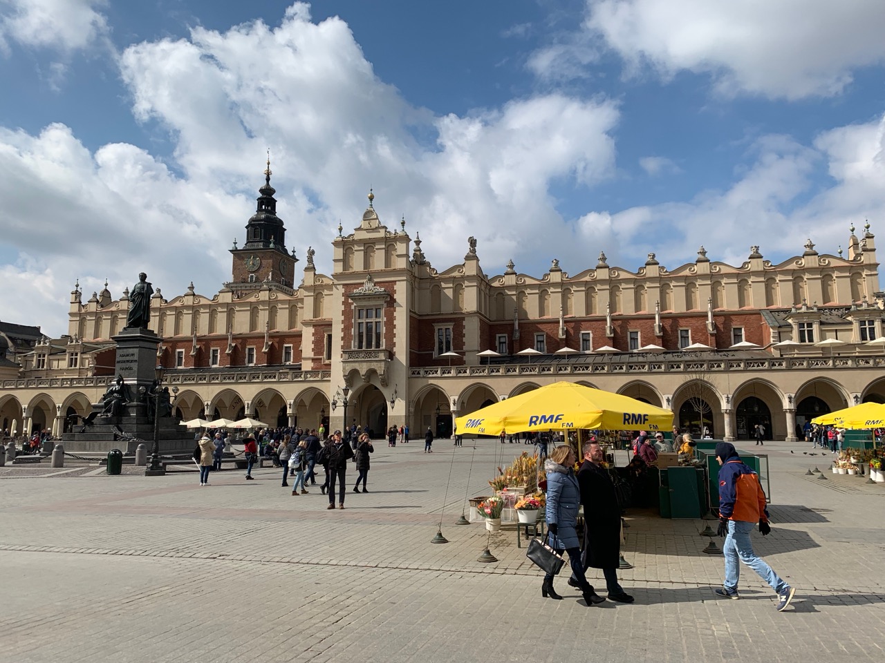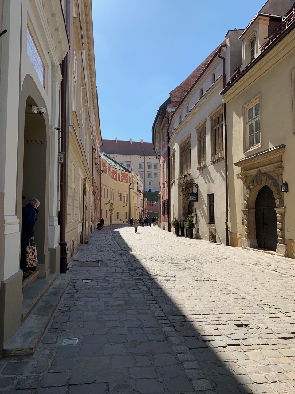 After viewing St. Mary’s we split up to explore more of Kraków. Clara and West headed to one side of Market Square (the largest medieval square in Europe) and we the other. We entered the Sukiennice (once the global center of international trade, now more a touristy set of indoor booths selling trinkets to the tourists) to explore treasures like amber from the Baltic Sea, carved wooden boxes, pisanki, and a variety of other souvenirs. We bought a few keepsakes and then strolled the square exploring up and down side streets within what was once a well-fortified walled city.