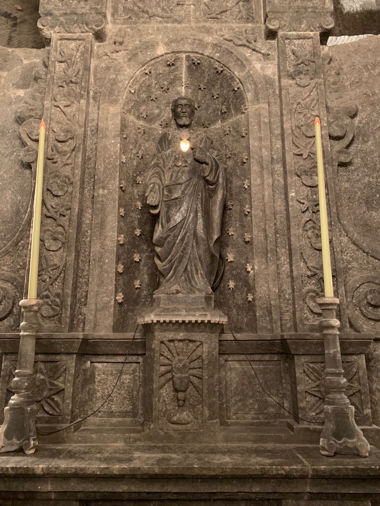 Our descent continued to a chapel built by and for the miners. During long stays in the mine it gave them a place to worship.