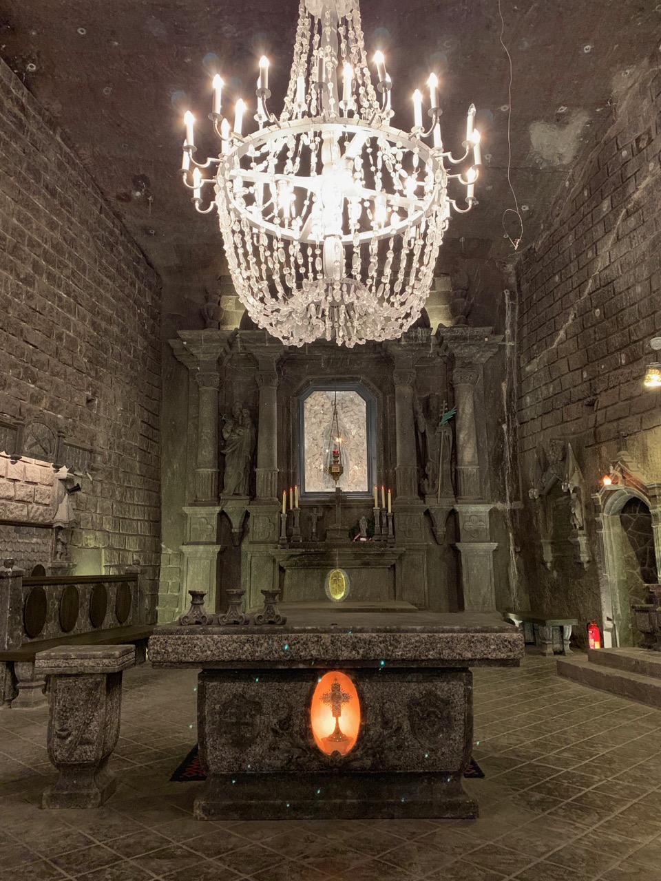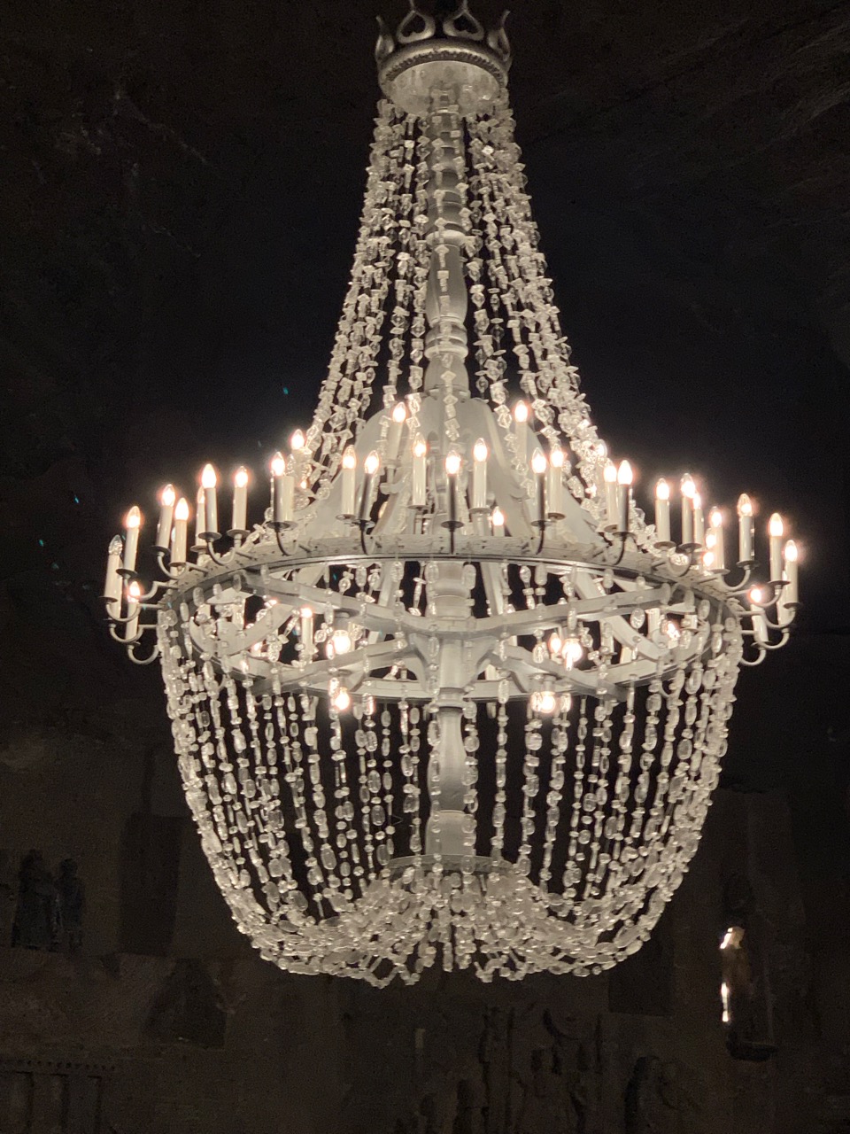 The most incredible chamber on the tour, at 331 feet deep, was the Chapel of St. Kinga – 67 years in the making (by 3 master miners who had been promoted to do the work). It held dozens of carved salt statues, a salt floor carved to look like tile, and even salt chandeliers.