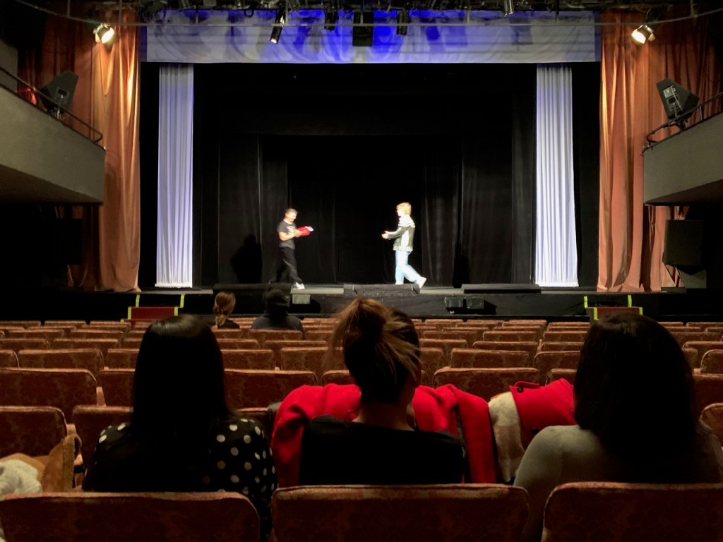 After the performance they asked for volunteers to “learn the secrets of black light theater.” Clara and West raised their hands and were invited on stage to learn the trade…