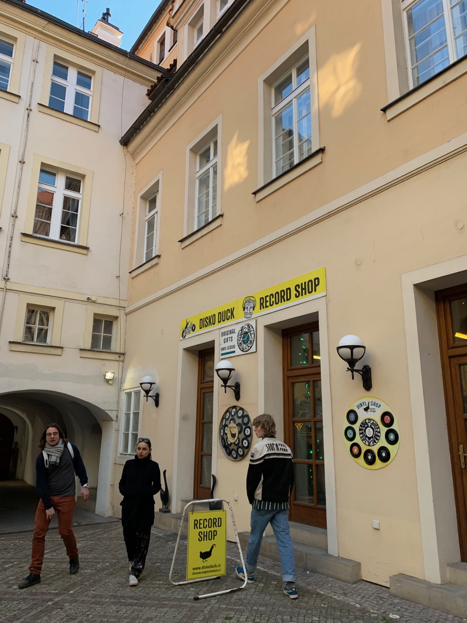 As the afternoon wore on we walked back thru Old Town Square and then beyond towards the Charles Bridge. Along the way we stumbled upon a record store tucked away in an inner courtyard – Disko Duck.